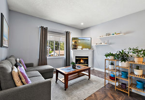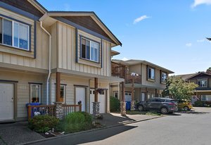 Welcome to this charming 3-bedroom, 2-bathroom townhome,located in the Goldstream Gates community. Featuring 1200 sq ft of well-designed living space with lots of natural light, 9 ft ceilings and pristine flooring. This home features a spacious open-concept living and dining area, a modern kitchen with updated appliances, a large primary bedroom with walk in closet and room for a king sized bed. There is a good size second bedroom next to the den (potential 3rd bedroom) which opens to the backyard on to a spacious patio perfect for relaxing and to watch the kids play.Enjoy the ample storage in both the crawlspace and attached garage. Located in a friendly community this home offers comfort and ...