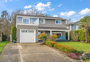 This gorgeous, turn- key family home is a rare find in Sidney! This beautifully updated 5 bedroom home is just a short stroll to the ocean, complete with a huge list of upgrades & renos. The stunning kitchen is flooded with natural light & has had a major renovation, all newer appliances, gorgeous quartz island & counter tops, new cabinetry, an amazing barista coffee station & wine fridge. Beautiful French doors lead to an amazingly private back yard oasis featuring a sprawling 700 sq ft deck - perfect for relaxing with a refreshing drink or curling up around a fire table in the evening. Upstairs the family room leads onto a newly renovated front deck, frosted glass panels on sides ...