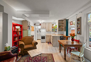 Upstairs offers two spacious bedrooms, a full bathroom, stunning maple hardwood floors, and a cozy wood-burning fireplace—perfect for fall evenings. Downstairs features a one-bedroom suite plus an additional bedroom and a den/media room, giving you the flexibility to configure the space to suit your needs. A heat pump, installed in 2022, ensures year-round comfort.