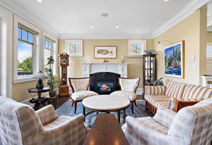 MAGNIFICENT EXECUTIVE HOME on an extremely private and beautifully landscaped low maintenance lot in the heart of South Oak Bay. An amazing luxury home in a stunning location, featuring a fabulous open concept floor plan with nine foot ceilings, a gourmet kitchen with six foot Island, top of the line European appliances, including a sub-zero fridge, massive Wolf gas stove, wine cooler, three fire places, expensive built in cabinetry, and high end finishing details like imported granite, hardwood flooring with in-floor radiant heating, decorative pillars, ceiling coffers, wainscoting, surround HD sound with built in speakers, all meticulously maintained, and in perfect condition. The huge master bedroom offers an amazing en-suite, walk-in closet and views with amazing sunsets & partial ocean glimpses. The current owners are avid gardeners, so the lot is beautifully landscaped, also featuring a covered patio with a gas BBQ hookup. Alarm system and central vacuum system roughed in.