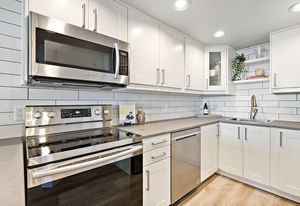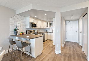 Welcome home to The Landmark in Sidney with gorgeous views of the Marina and ocean! You will love this thoughtfully updated one bedroom condo featuring brand new kitchen with stainless steel appliances, spa like bathroom with walk in shower, vinyl plank flooring, and new paint throughout. A concrete and steel building offers a guest room, secure underground parking, common area, storage locker and onsite caretaker. This location cannot be beat - steps to oceanside walkways, restaurants and pubs, shopping and community events are plenty.