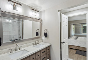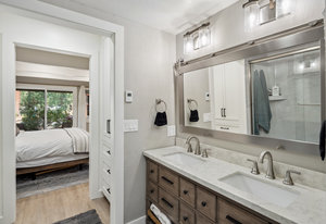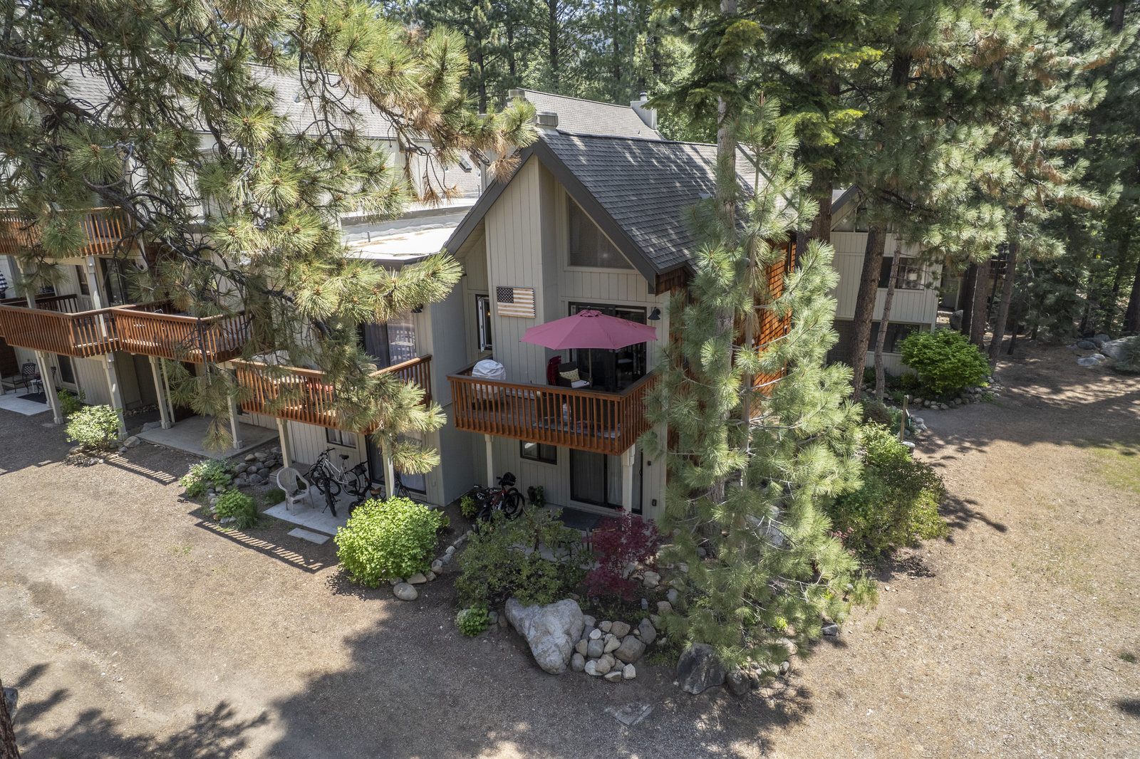 Tahoe Racquet Club. Unit 84 is one of, if not the best located and remodeled unit in the complex. Completely renovated and upgraded to the highest level. Light and airy, this TRC unit is an end unit overlooking forest open-space with the creek in the distance. Private setting away from other units. Including a main level deck and ground level porch. Unlike other units in this complex, Unit 84 has 2 bedrooms on the ground level including the primary bedroom and en-suite bath. Meticulously updated to use every square inch of space in a smart and useful way. Park-like views from the primary bedroom are like being in a manicured Tahoe forest with natural boulders all around. The kitchen and great room have sweeping forest views through a large picture window. Privacy and views abound from the deck. As you look through the photos, you will see detail that is so rare to find. Walk to Rec. Center, pool, Tennis, Pickleball, and Inclines world class private beaches. Easy to see.!