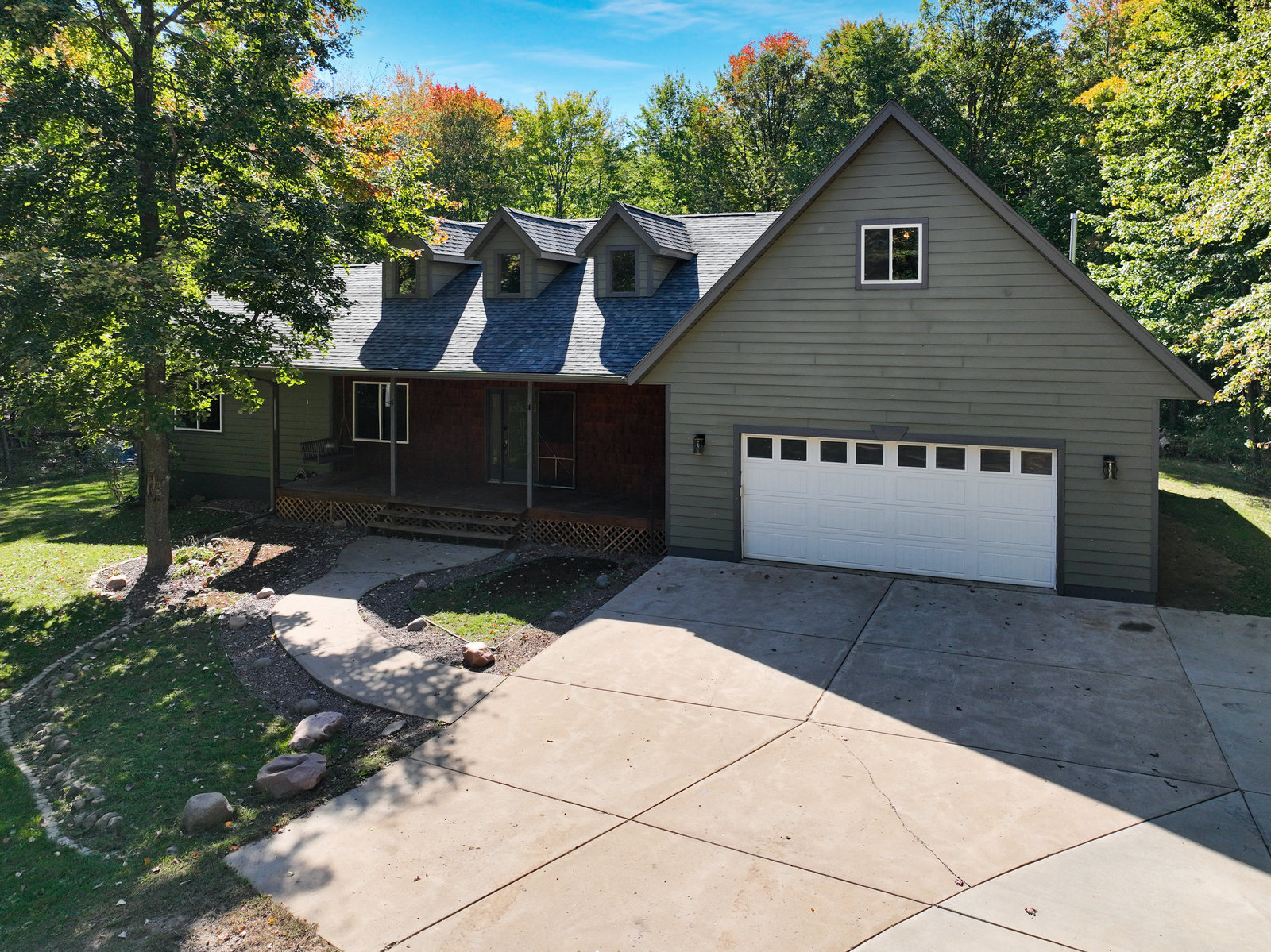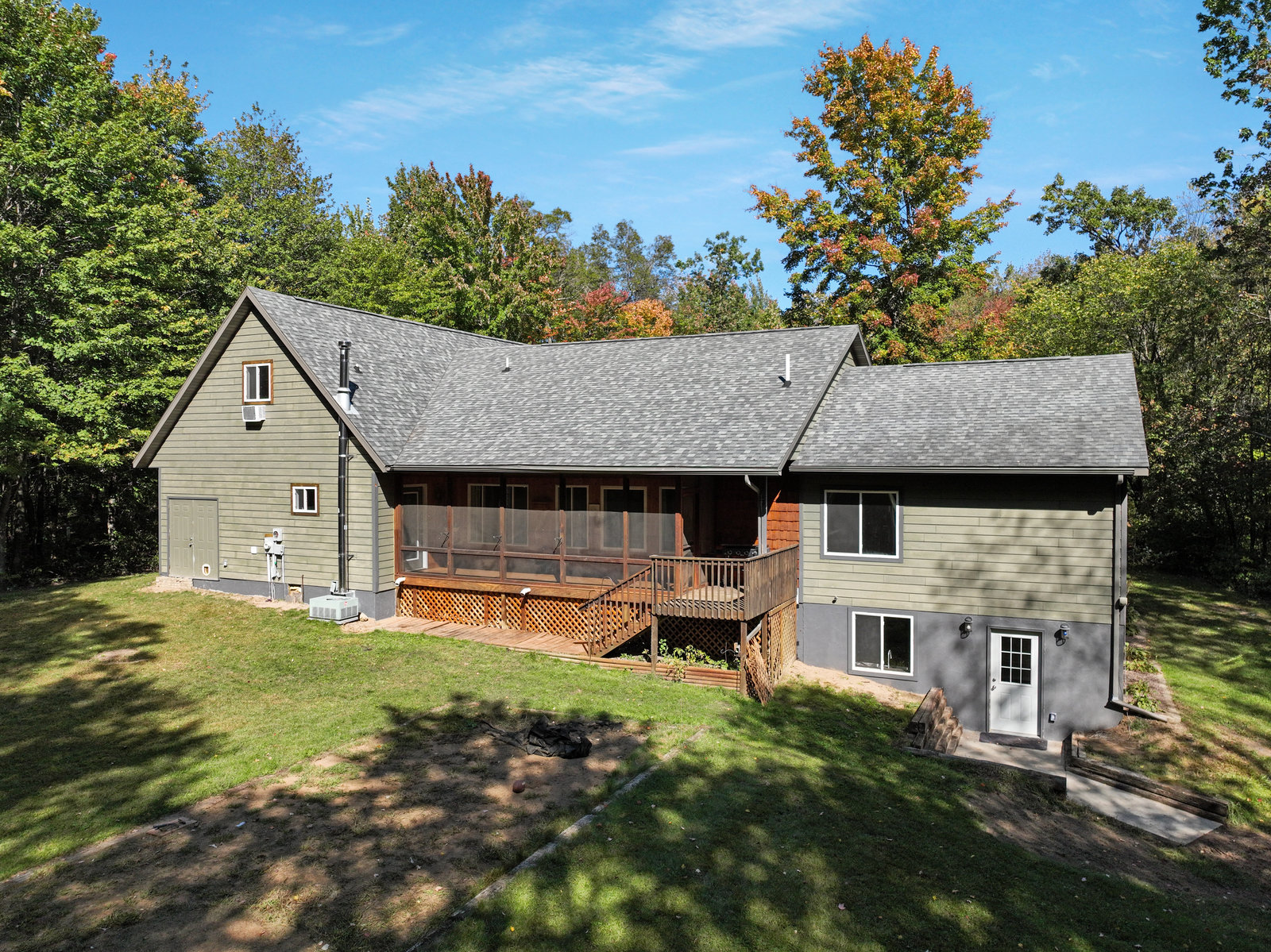Nestled amidst 3.58 wooded acres, this stunning 6-bedroom, 4-bathroom home offers the unparalleled living space and privacy, just minutes from town. Hidden among the trees, this property promises tranquility, with an abundance of wildlife and serene views. The main-level boasts vaulted ceilings, complemented by large windows and an open-flowing floor plan. The screened porch is ideal for enjoying the natural surroundings, offering a peaceful escape without leaving the comfort of home. Continue to the lower level to find a private in-law suite in the finished, walkout basement—perfect for guests. This property is steps away from the Chetek Chain of Lakes; while being a quick drive to daily necessities, schools, and entertainment. Need more storage? There is ample room to build an additional shed! This home offers flexibility for all your needs, with endless space, ultimate privacy, and close proximity to town; this is the perfect place to call home!