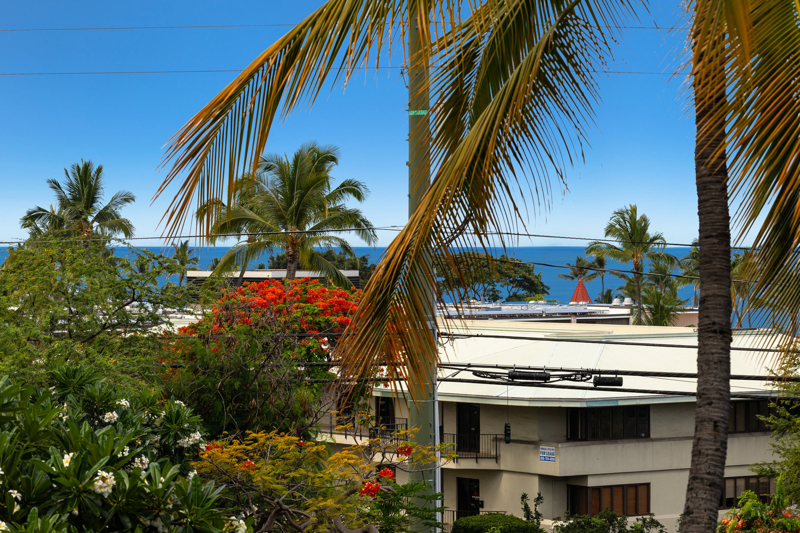 Top floor unit with ocean views over Hulihe’e Palace and Mokuaikaua.