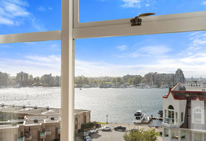 Welcome home....This first time listed property is a very unique, pristine piece of real estate in Victoria. Having only been lived in for 3 to 5 weeks per year since completion in 2000, it is like new throughout. This 2000 sq ft plus condo has views from every window and is spacious, yet warm and inviting with a double sided fireplace and a very well thought out floorplan This three bedroom plus office condo has everything you could want in a penthouse apartment The wrap around deck has city and water views and the the covered patio offers unobstructed views of the inner harbour. The Legacy has everything from a workshop, to a library, bike strorage, EV charging, exercise room and even a car washing station. Walk to downtown, go the the spas, the amazing resturants and enjoy all of that Victoria has to offer from your new home in the inner harbour.