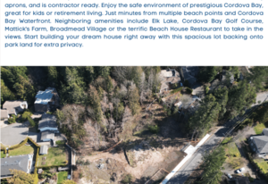 Don't miss this rare opportunity to own a large, flat lot in the desirable Cordova Bay community! Lot 1-5117 Del Monte Avenue has come available to the market, located in a fantastic family neighbourhood, just minutes from town and arguably in the best school catchment in the city. This easy build site boasts +/- 14,639 square feet to bring your ideas and make it a reality. This lot is serviced and finished with new sidewalks, driveway aprons, and is contractor ready. Enjoy the safe environment of prestigious Cordova Bay, great for kids or retirement living. Just minutes from multiple beach points and Cordova Bay Waterfront. Neighboring amenities include Elk Lake, Cordova Bay Golf Course, Mattick's Farm, Broadmead Village or the terrific Beach House Restaurant to take in the views. Start building your dream house right away with this spacious lot backing onto park land for extra privacy.