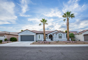 Amazing strip views from your oasis-style backyard or from inside your great room. Completely redesigned and reimagined very popular Arlington model in Sun City Anthem. This beautiful 1 story, 3 bedroom, 3 bathroom home has been completely remodeled. Oversized 2 car garage with storage and area for workshop. This model home has an inviting courtyard entry with complete landscape makeover. All new AC units and system. Unlike any other Arlington model, this home has a large open kitchen with new huge walk-in pantry offering a custom coffee bar and prep area. Stylish new custom cabinets, new elegant book-matched quartz counter tops with custom tile backsplashes, all new plumbing hardware, all ...