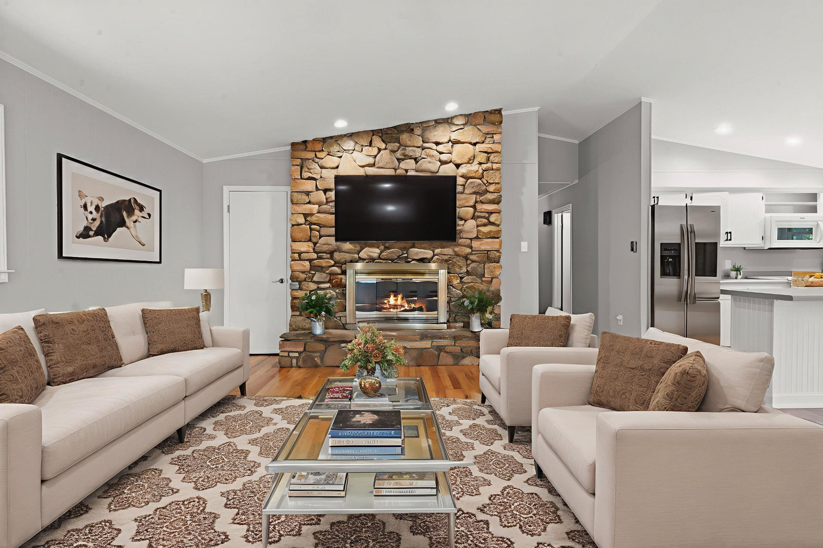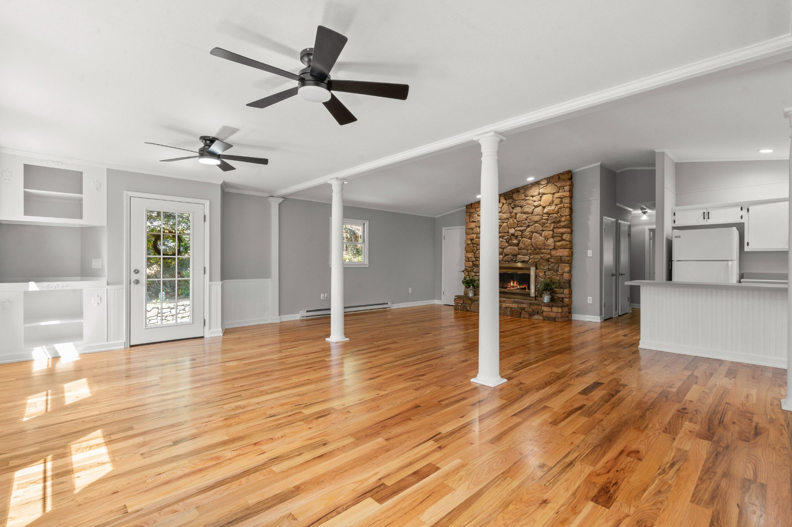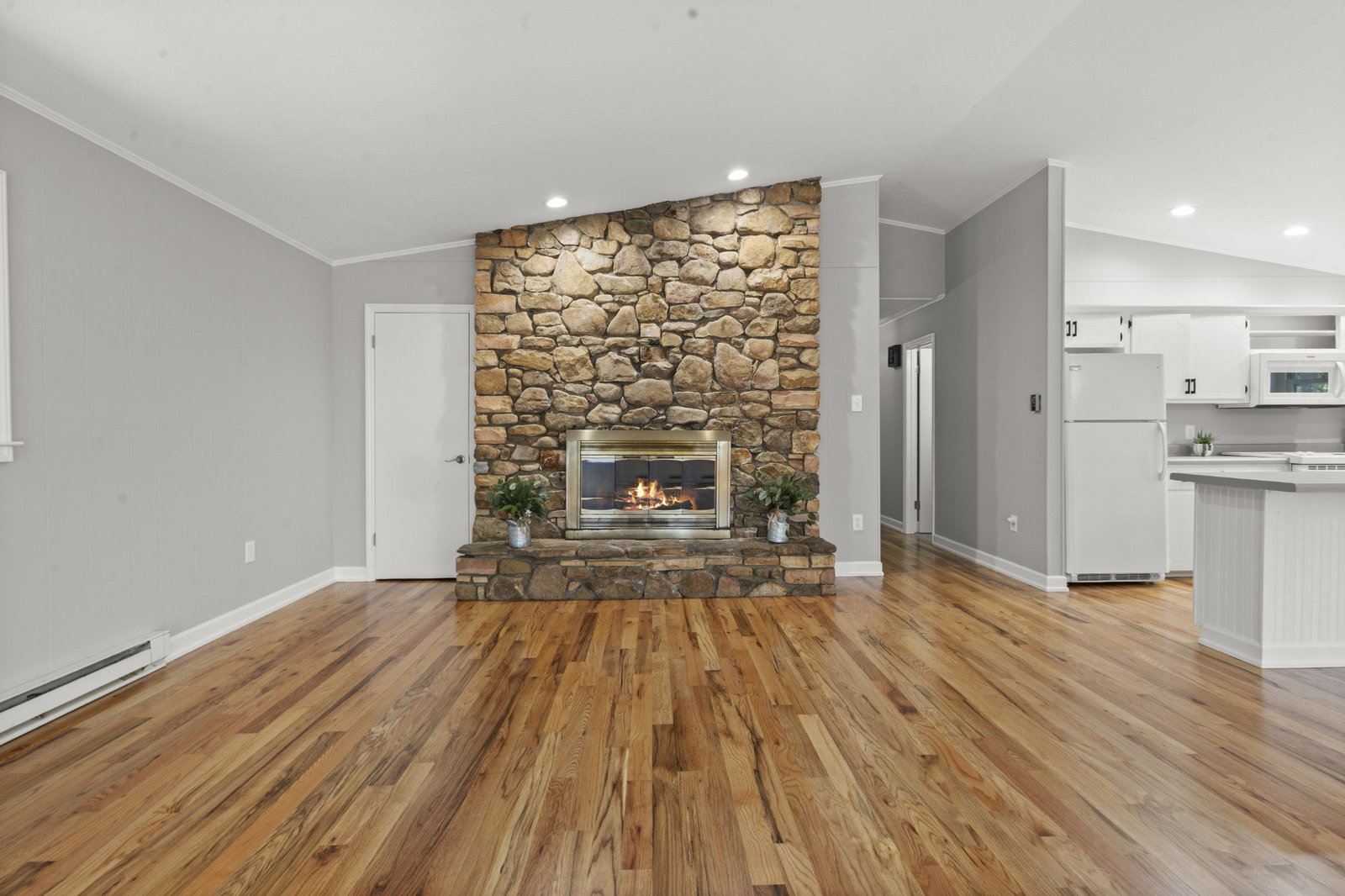 The living room offers a cozy fireplace that adds warmth and charm to the space - perfect for relaxing evenings or entertaining guests. Attached to the main living area is a sunroom; imagine sipping your morning coffee while basking in the natural sunlight pouring in from this peaceful retreat.