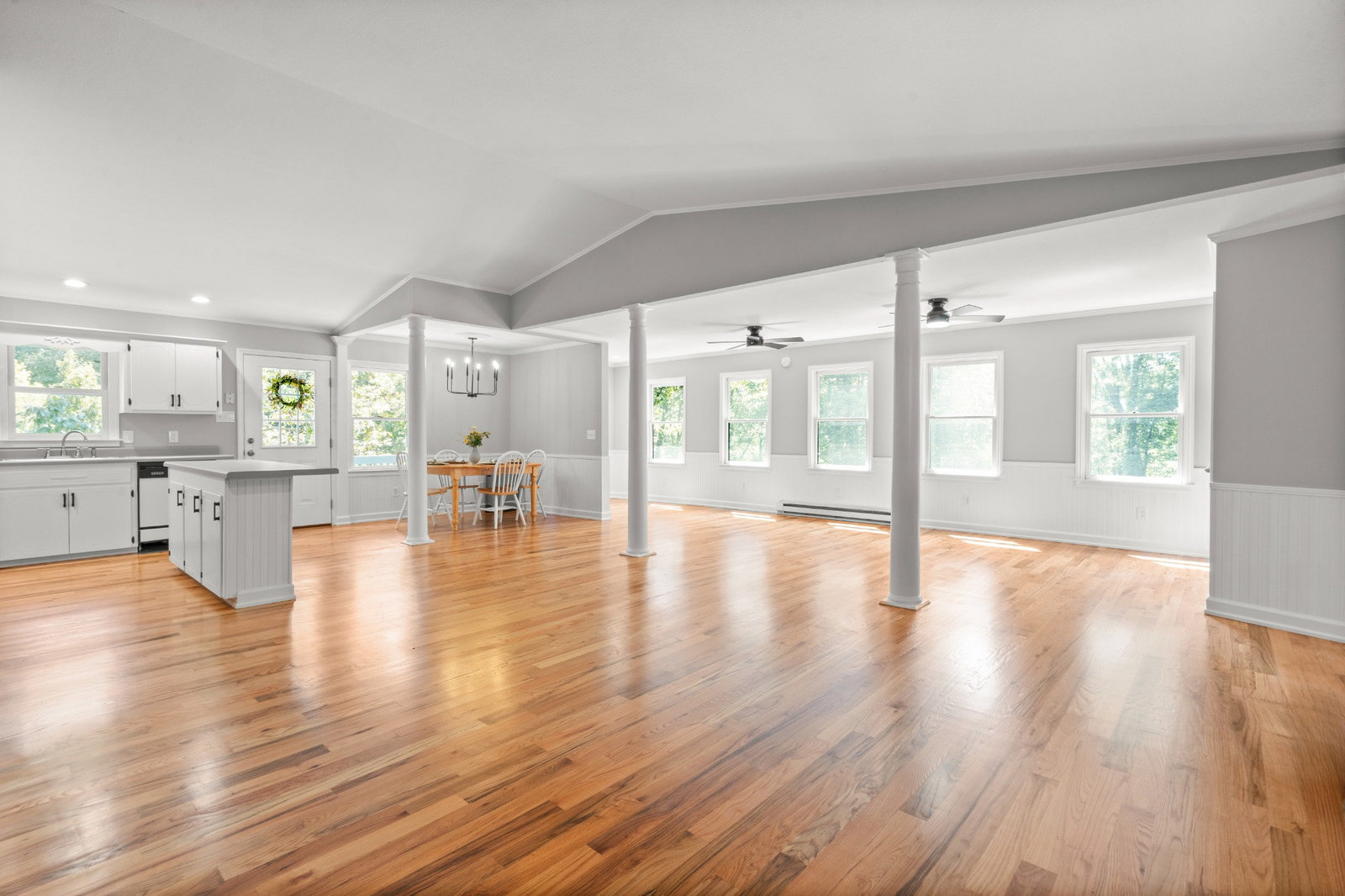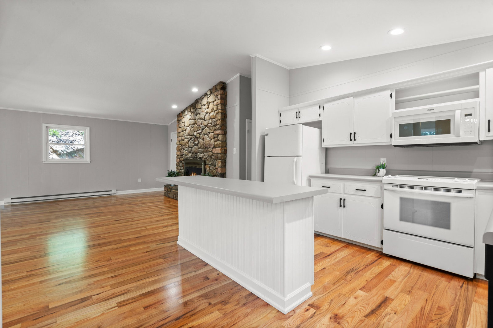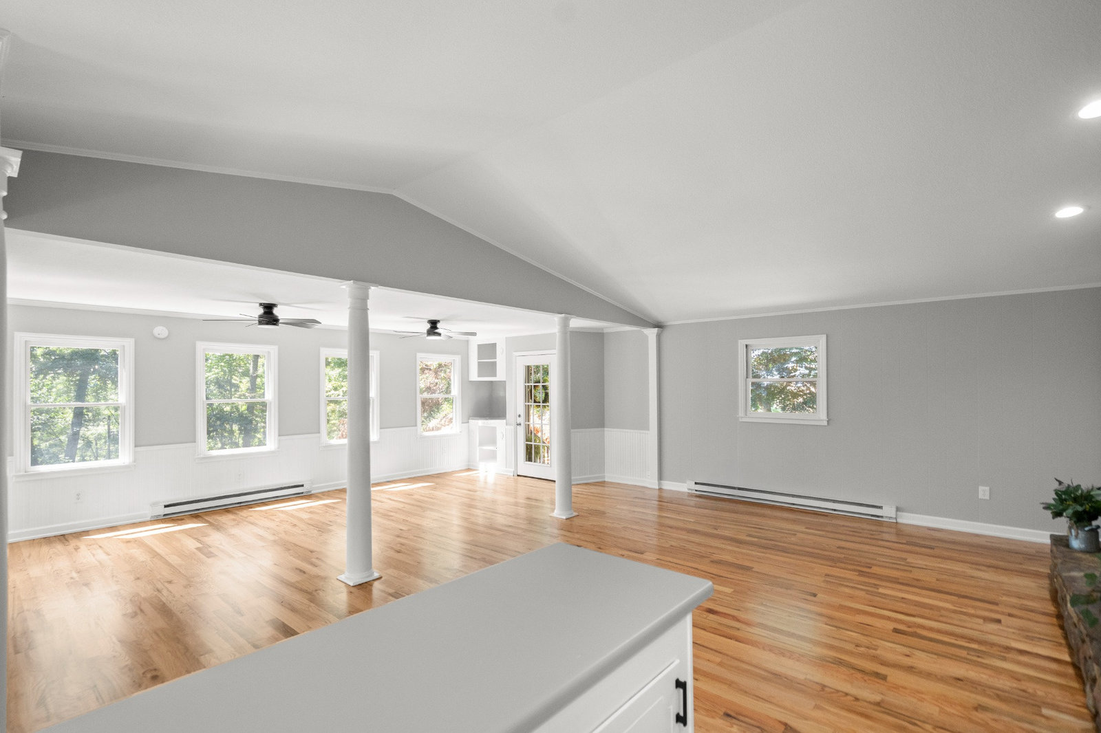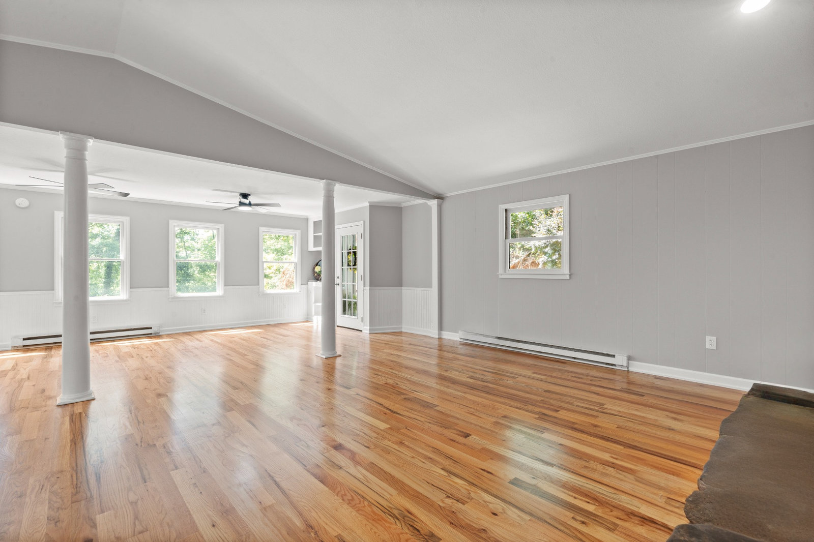 The living room offers a cozy fireplace that adds warmth and charm to the space - perfect for relaxing evenings or entertaining guests. Attached to the main living area is a sunroom; imagine sipping your morning coffee while basking in the natural sunlight pouring in from this peaceful retreat.