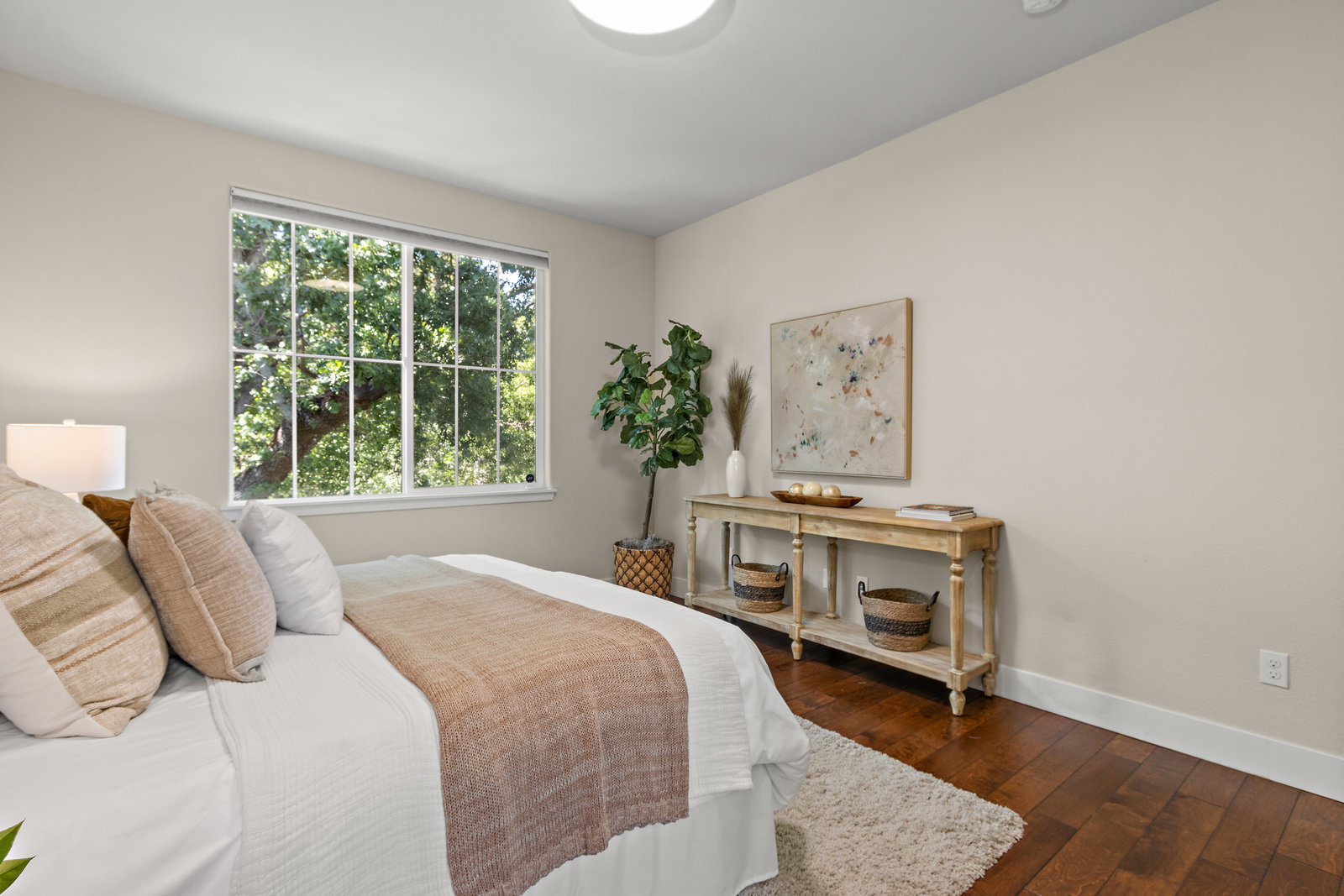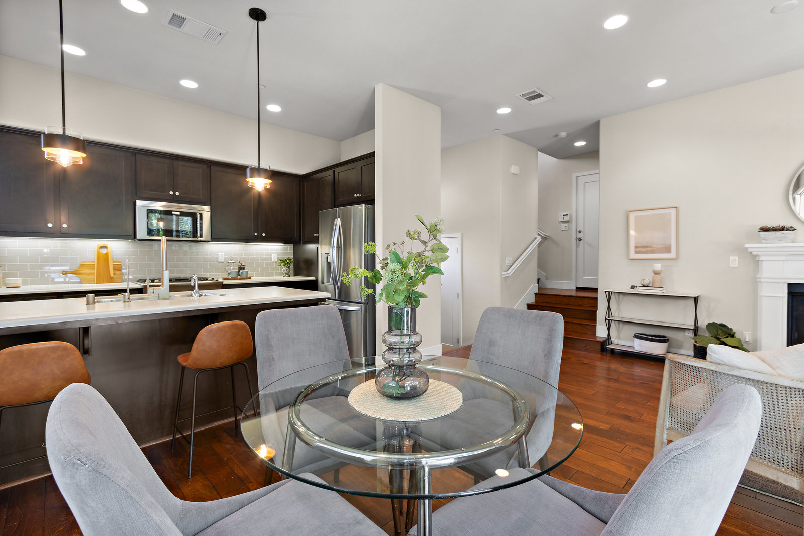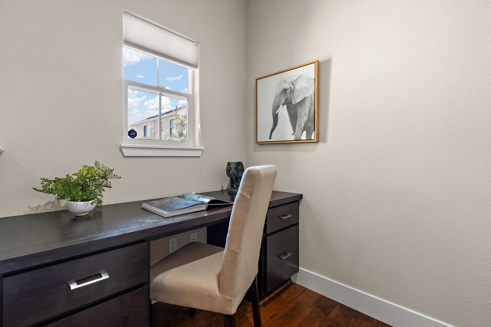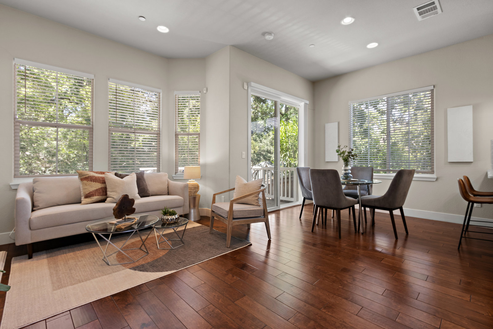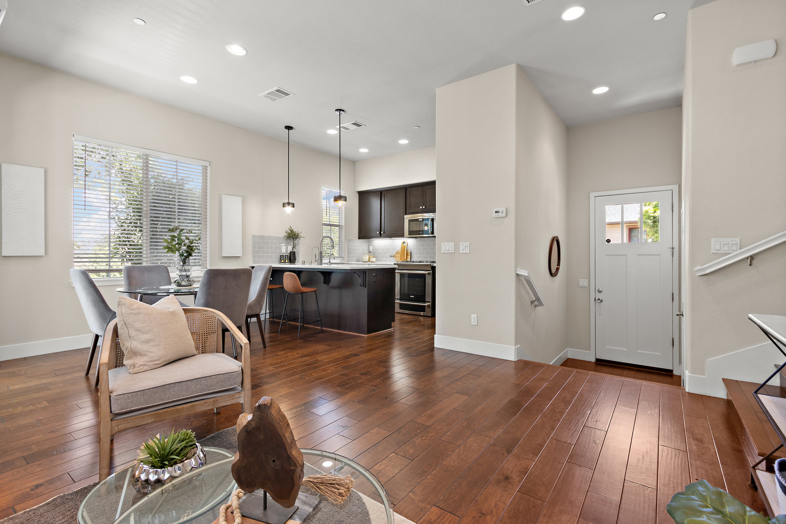 Built in 2015, this beautiful 3-bedroom, 2.5-bath townhouse combines contemporary design with everyday functionality. From the moment you step inside, you’ll be captivated by the spacious open-concept layout, high ceilings, and gleaming hardwood floors that create an inviting, light-filled atmosphere. The gourmet kitchen features sleek quartz countertops, stainless steel appliances, and generous cabinet space. Whether you’re entertaining or enjoying a quiet evening at home, the seamless flow between the kitchen, dining, and living areas provides the perfect setting. Upstairs, the luxurious primary suite offers a private retreat with a spa-inspired bathroom complete with a soaking tub, separate glass-enclosed shower, dual vanities, and a spacious walk-in closet. Two additional bedrooms offer flexibility for family, guests, or a home office, while the second full bath is beautifully appointed. Enjoy the convenience of an upstairs laundry room, a versatile bonus office space, and an attached two-car garage. Outside, the shaded patio—nestled under mature trees-offers a peaceful space to unwind. Located just a short walk to BART and top-rated Walnut Creek schools, and minutes from major freeways and downtown Walnut Creek’s vibrant shopping and dining, an exceptional place to call home
