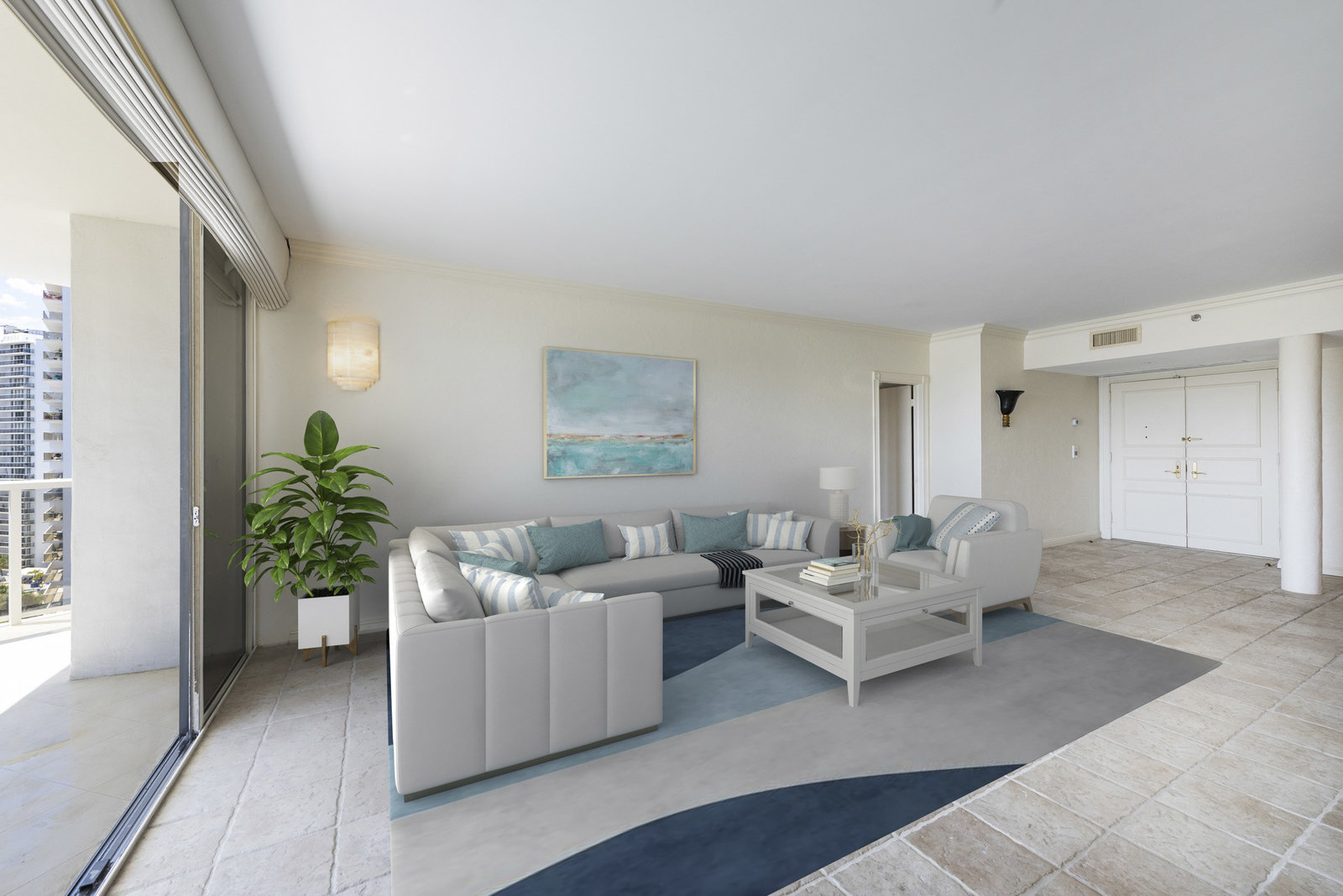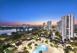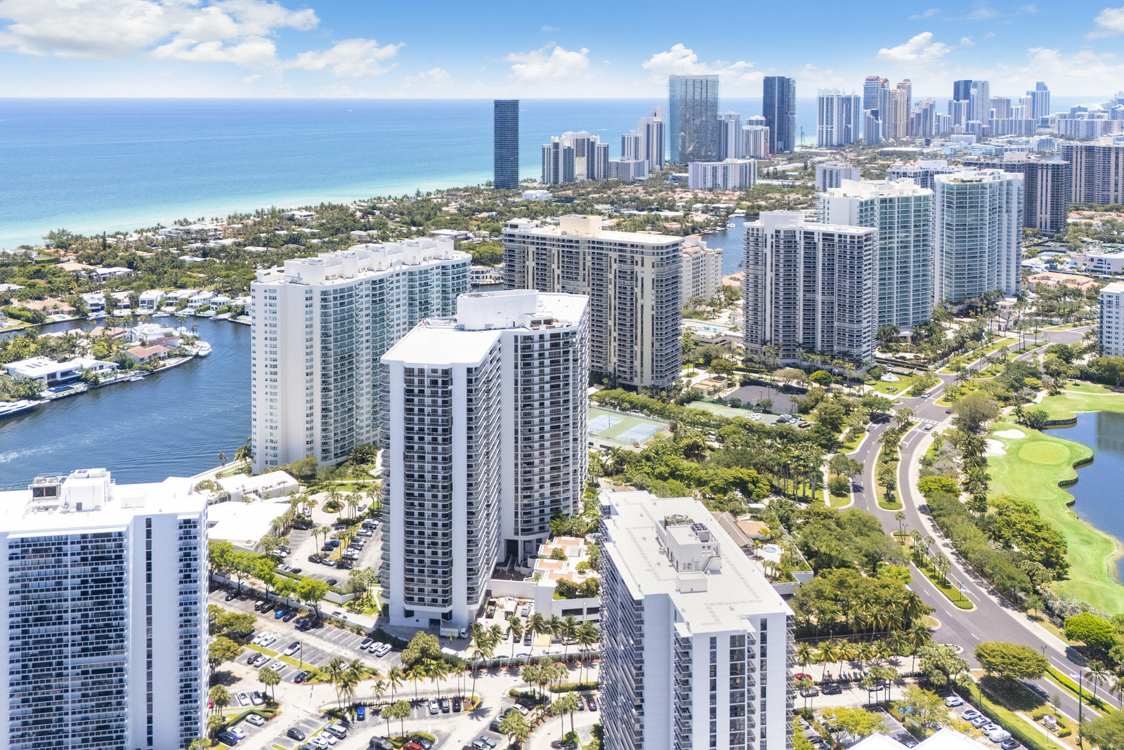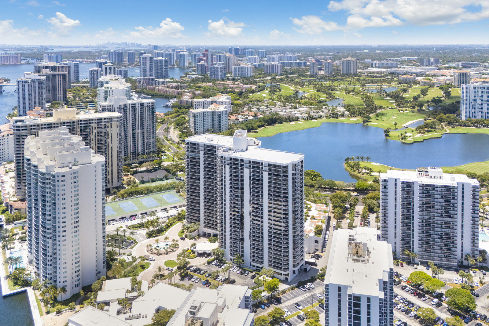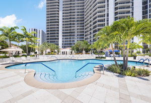 Spacious 2BR/2BA, 1,560 SF condo with stunning views of the resort-style pool and Turnberry golf course. Bright, open layout with generous living space and large bedrooms. Full-service luxury building...