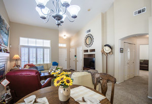 Immaculate home. True pride of ownership from the original owner. This is a turnkey home that has been very well taken care of. Home has all new appliances. Home also has a complete new Trane heating and cooling system. Home has 2 oversized bedrooms with full bathrooms, each with a garden tubs for luxury feel. Beautiful shutters, two tone paint, luxurious upgraded carpets. Very smart and open floor plan with vaulted ceilings and fireplace in the great room. Cozy front porch with railing. Amazing back yard covered patio. Sliding door has remote controlled Rolladen shutters for temperature comfort and security convenience. Majestic mountain views from your front window. Come and see this beautiful home. You will not be disappointed.