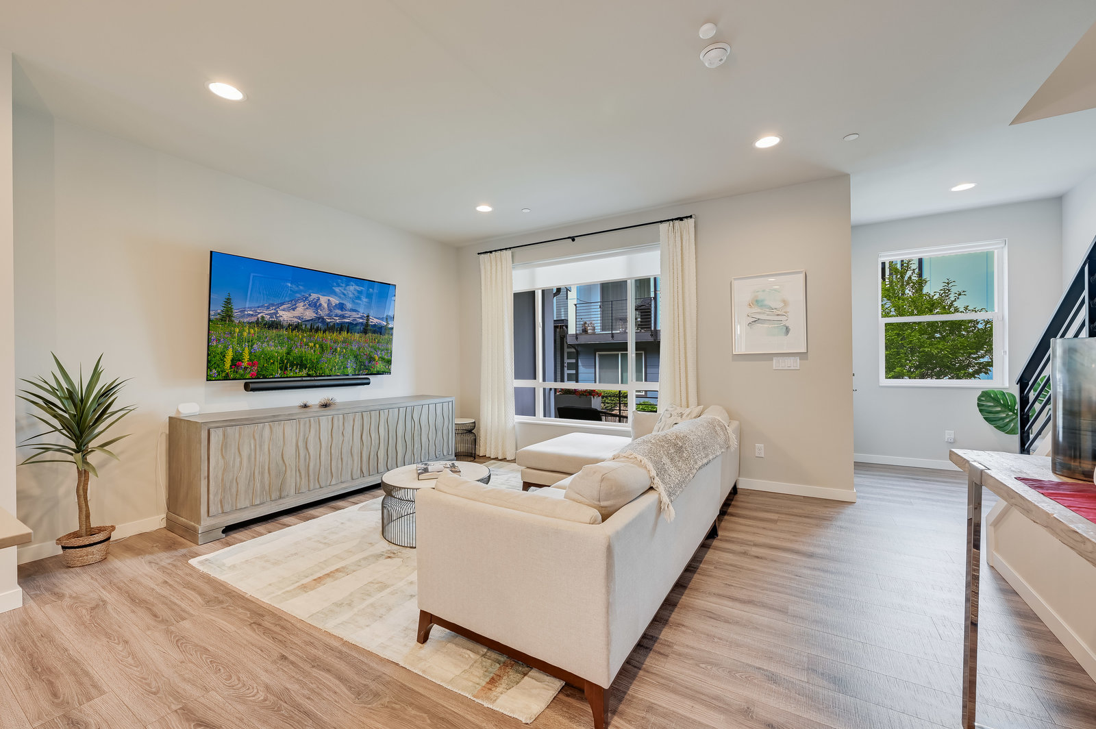 Welcome to Towns on 145th! Better than new, this townhome is located 1/4 mile from the light rail station in the sought-after Shoreline community. Schools are ranked one of the best! The largest unit in the complex, this home has a bright, modern feel from the moment you walk in. This home features large windows, quartz countertops, stainless steel appliances, island in the kitchen with eating space, covered front patio, private deck off primary suite, air conditioning, engineered hardwood floors. Primary suite features private, covered patio, 5-piece ensuite and large walk-in closet. All bedrooms are generously sized, closets are ample. Don't miss the family/bonus room off the garage in the lower level. 2 car side by side garage, electric car charger. Close to shopping, restaurants, entertainment. This beautiful home will sell fast! Send an inquiry in the form below.