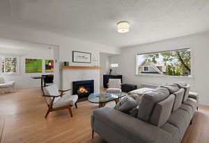 You’ll love the warmth of original wood floors, the ambiance of two gas fireplaces, and the natural light that floods in through large corner windows. Perfect for both everyday living and entertaining, the spacious layout is complemented by stylish decorator paint tones and a thoughtfully renovated interior.