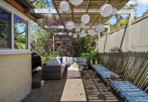 The sleek stainless steel kitchen will delight any home chef, while multiple patios provide sun and shade throughout the day—ideal for relaxing, gardening, or dining al fresco. The private, partially fenced lot is great for kids and pets, and the desirable corner location adds to the home’s sense of space and privacy.