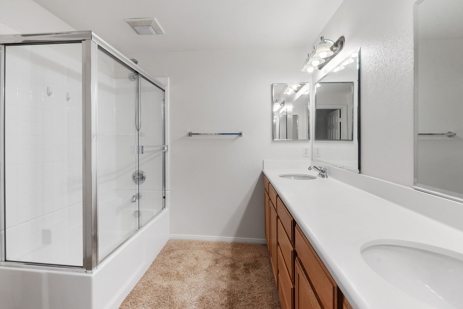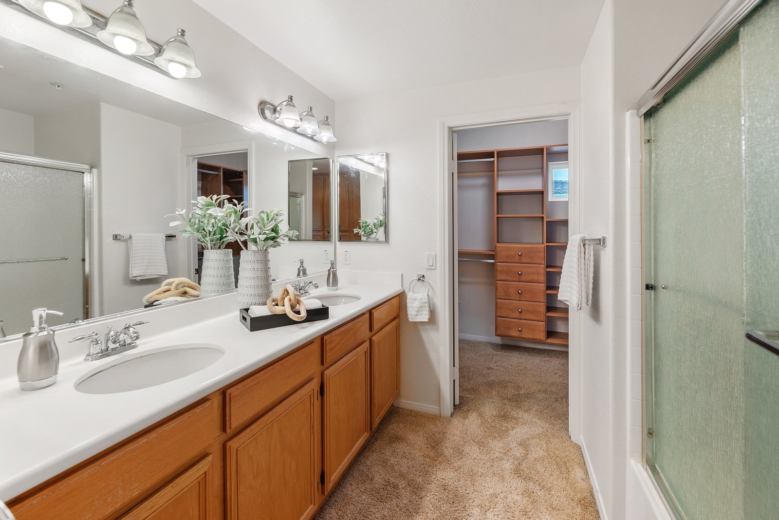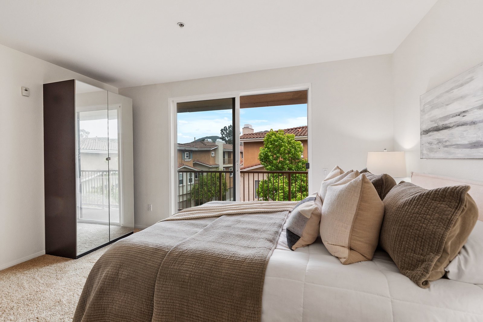 Seller will entertain offers between $800,000-$840,000. Welcome to your ideal San Diego retreat in the heart of Sabre Springs! This beautifully maintained corner unit lives like a single-family home—offering the privacy of no neighbors above or below and the convenience of an attached two-car garage. Step inside to discover rich wood flooring on the main level, where a user friendly kitchen flows seamlessly into the inviting family room—complete with a cozy fireplace and access to one of three private balconies. It’s the perfect layout for relaxing or entertaining. Upstairs, you’ll find dual primary en suite bedrooms, along with a bonus loft space ideal for a home office, study nook, or creative corner. Located in the sought-after Heritage Villas community, residents enjoy guest parking, a sparkling pool and spa, and proximity to Morning Creek Elementary School—just half a mile away. All within the award-winning Poway Unified School District and minutes from shopping, dining, and freeway access. Turnkey, stylish, and superbly located—this is the home you’ve been waiting for!