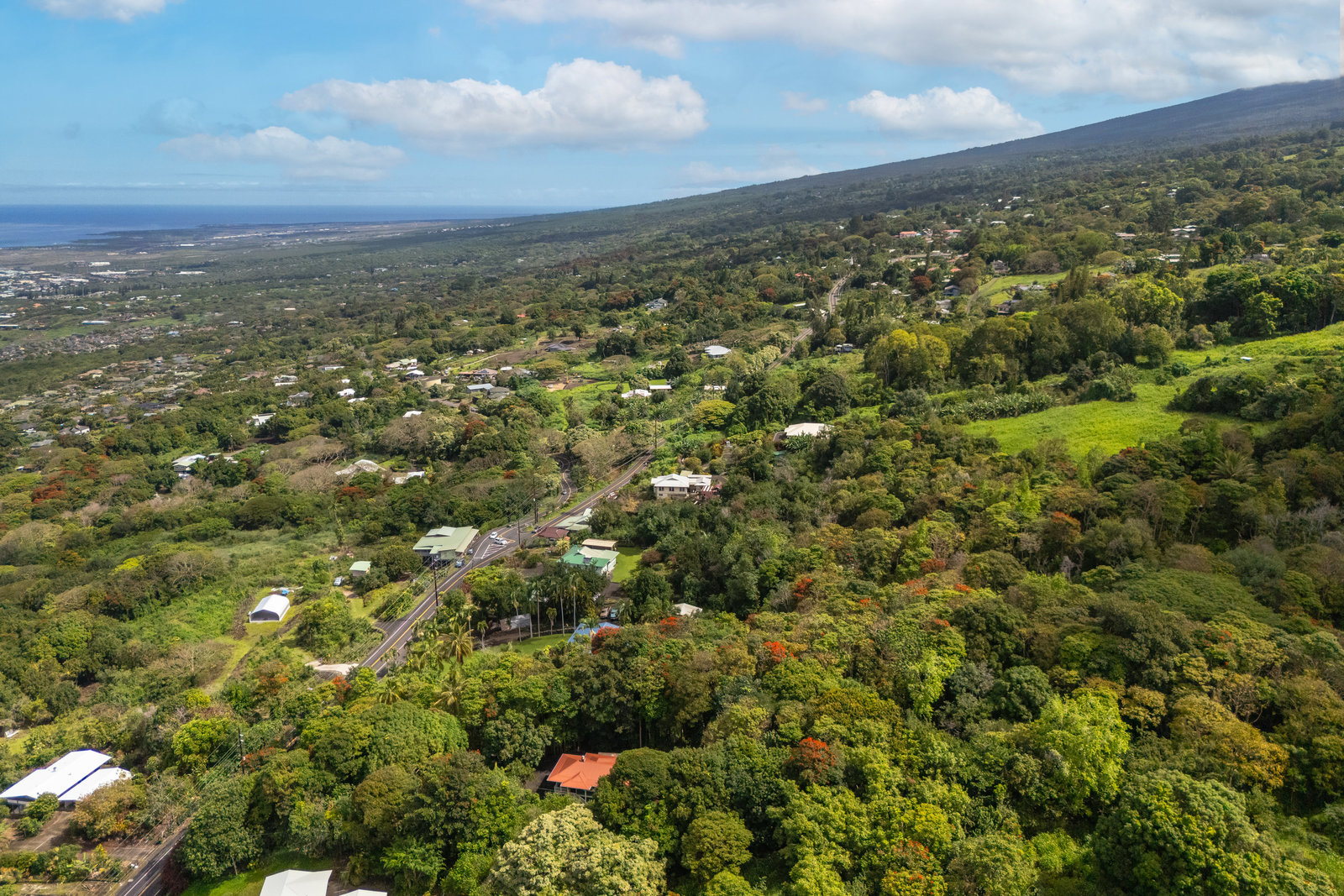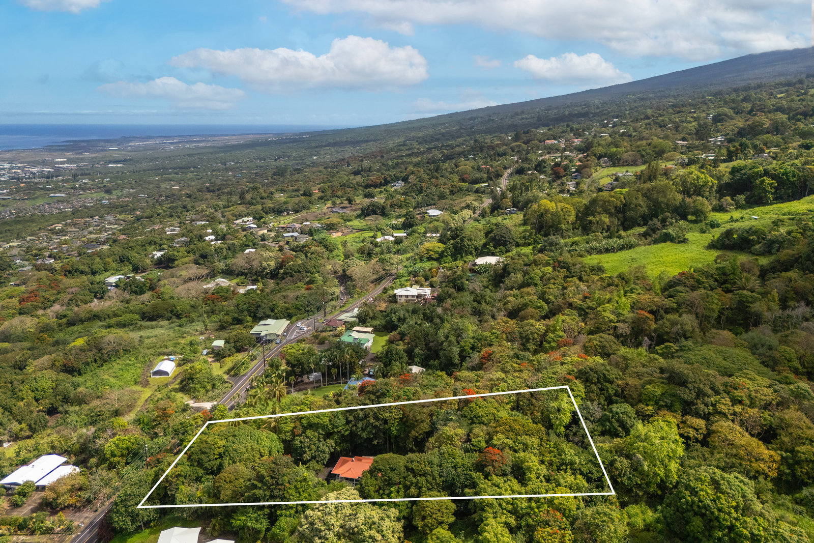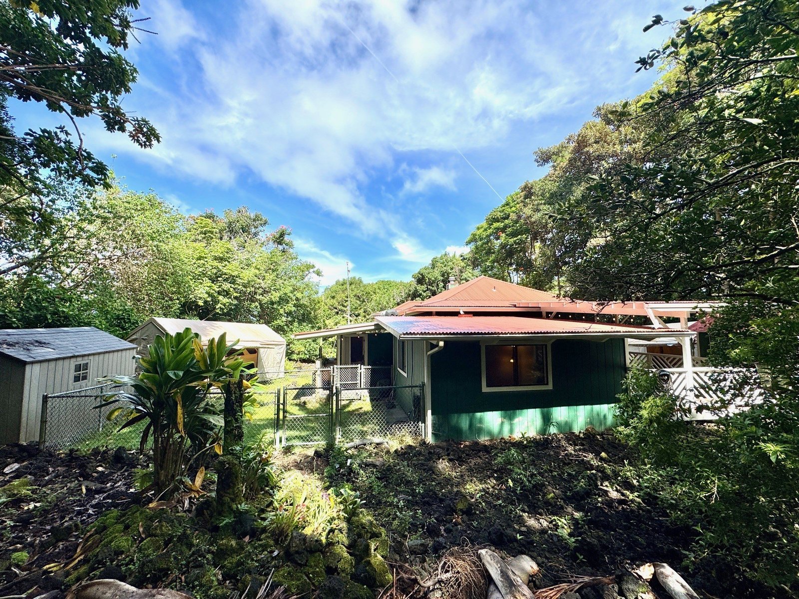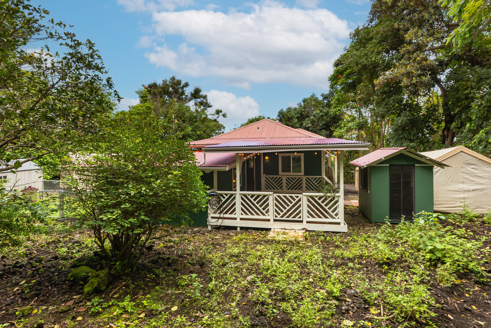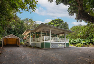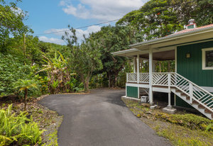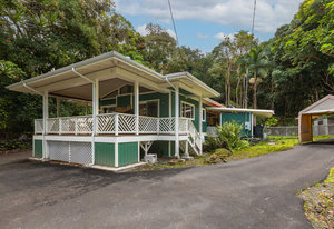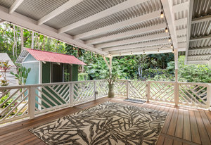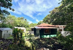 Experience timeless island charm in this beautifully rebuilt 2-bedroom, 1.5-bath home, ideally situated at a comfortable 1,200' elevation in the heart of Holualoa. Fully reconstructed in 2014, this picturesque residence is set on a full acre of lush tropical land, offering privacy, tranquility, and an abundance of mature fruit trees—mango, pomelo, lychee, dragon fruit, old-growth coffee, and multiple avocado varieties.