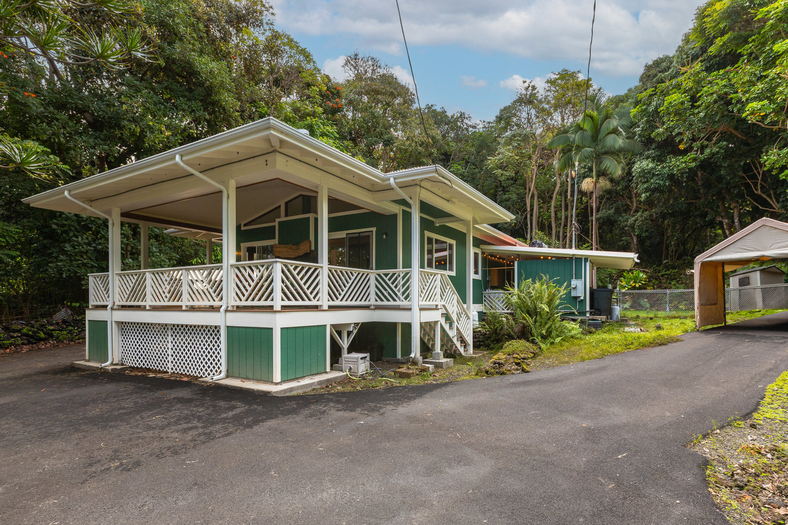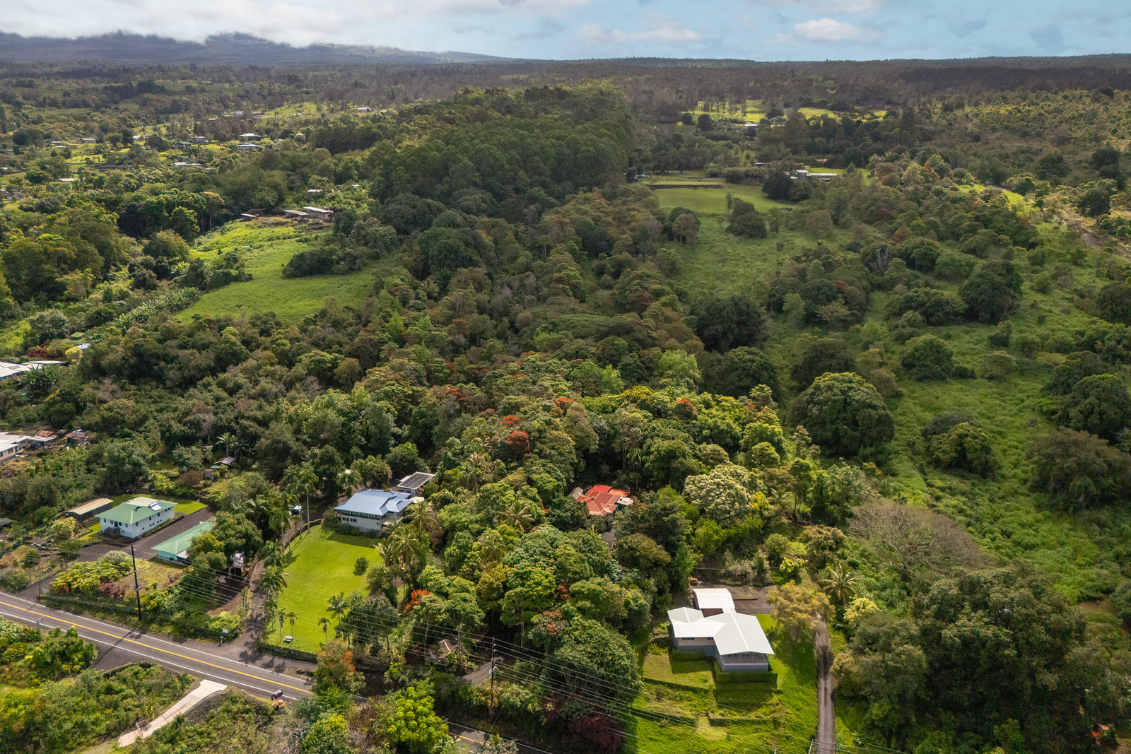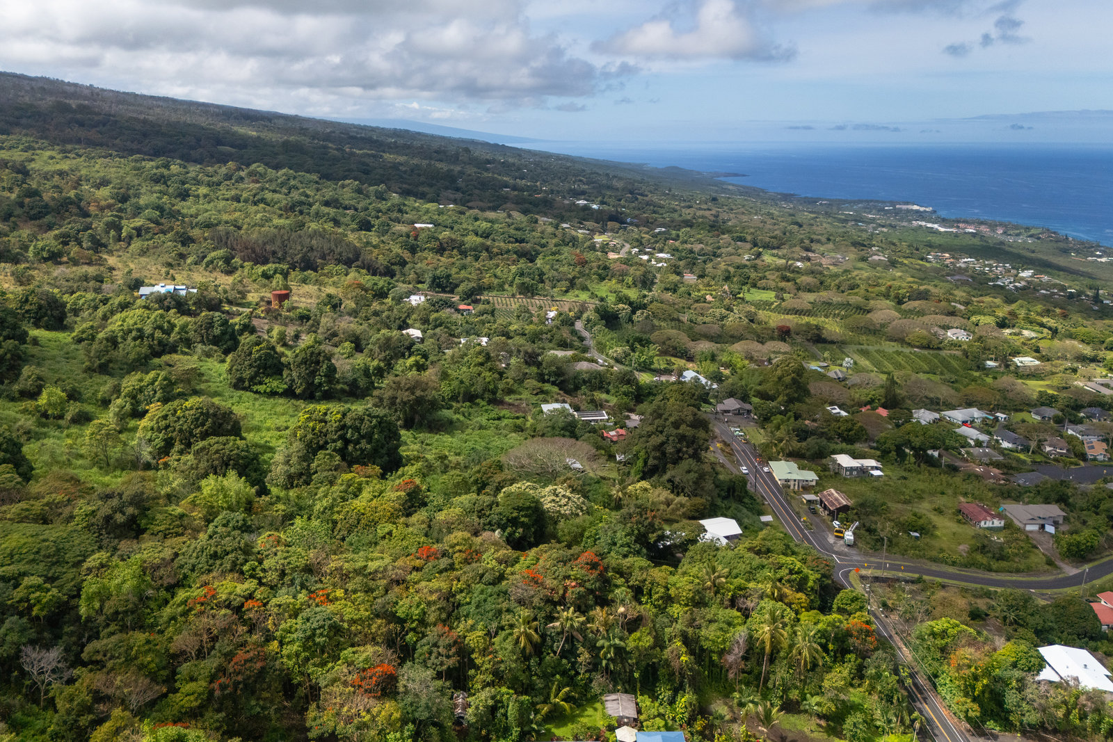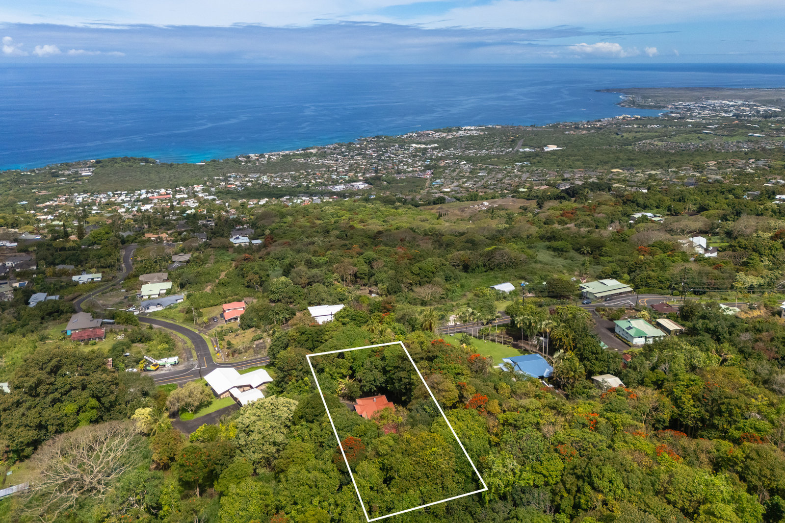 Experience timeless island charm in this beautifully rebuilt 2-bedroom, 1.5-bath home, ideally situated at a comfortable 1,200' elevation in the heart of Holualoa. Fully reconstructed in 2014, this picturesque residence is set on a full acre of lush tropical land, offering privacy, tranquility, and an abundance of mature fruit trees—mango, pomelo, lychee, dragon fruit, old-growth coffee, and multiple avocado varieties.