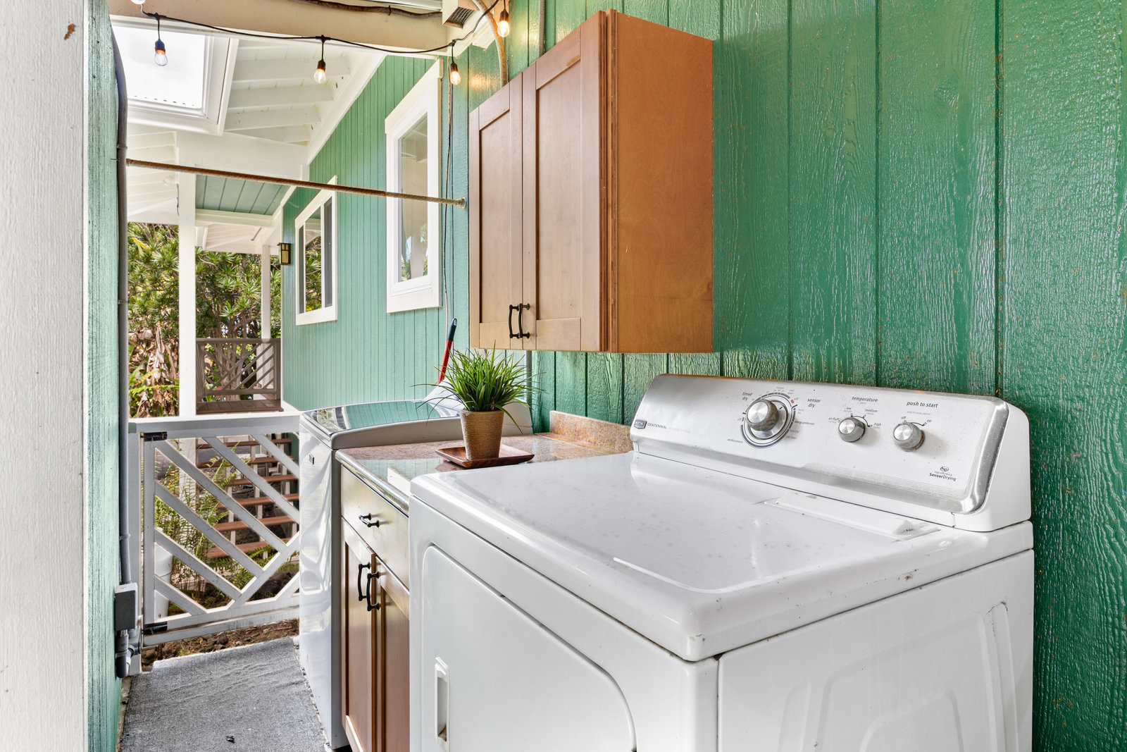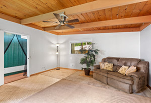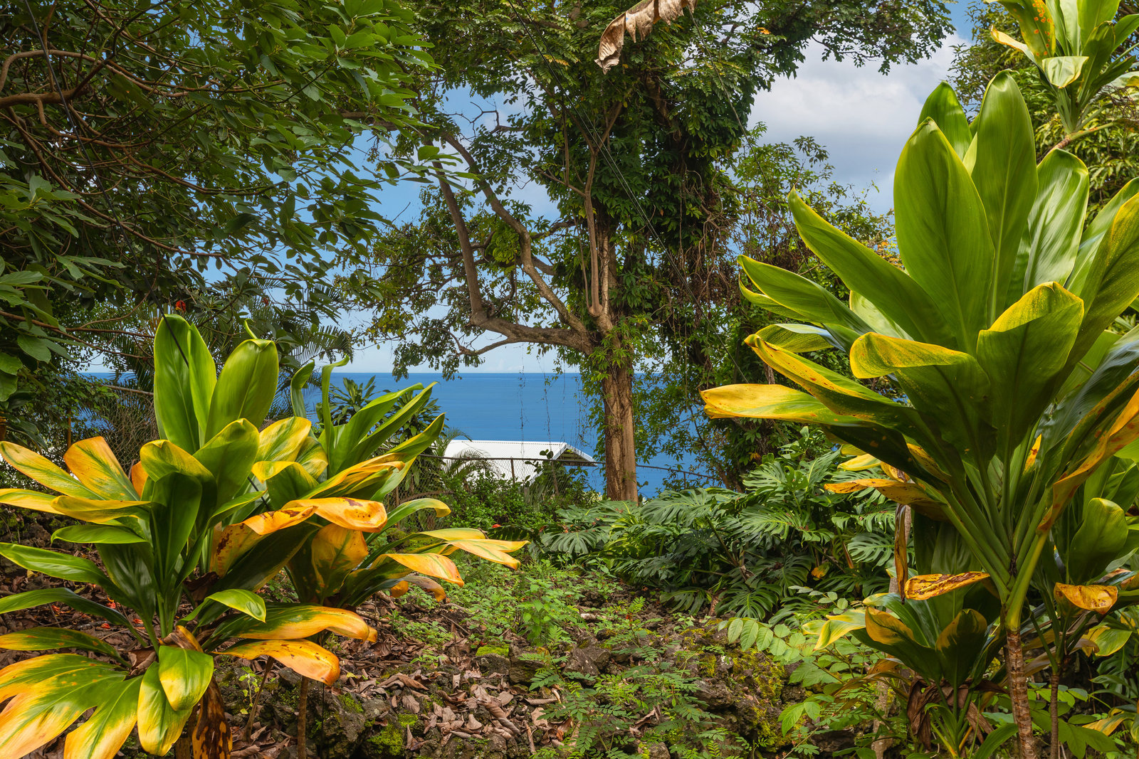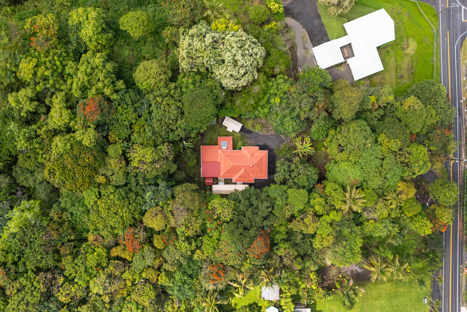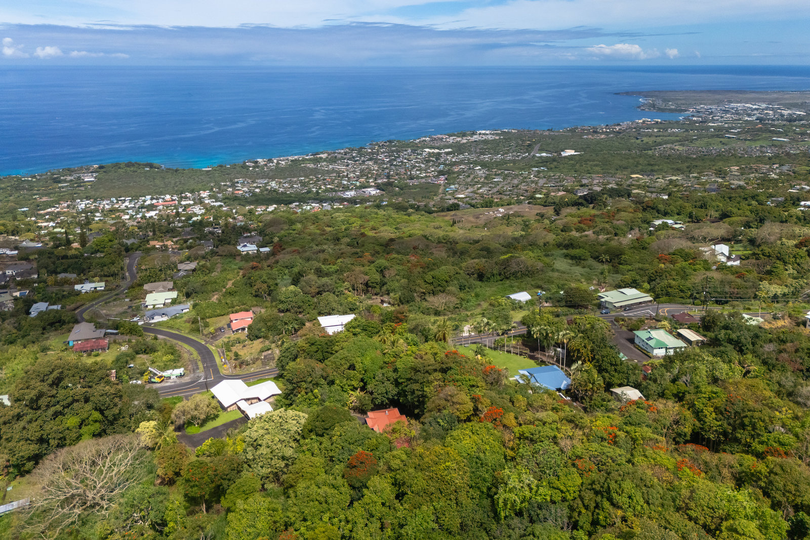 Experience timeless island charm in this beautifully rebuilt 2-bedroom, 1.5-bath home, ideally situated at a comfortable 1,200' elevation in the heart of Holualoa. Fully reconstructed in 2014, this picturesque residence is set on a full acre of lush tropical land, offering privacy, tranquility, and an abundance of mature fruit trees—mango, pomelo, lychee, dragon fruit, old-growth coffee, and multiple avocado varieties.