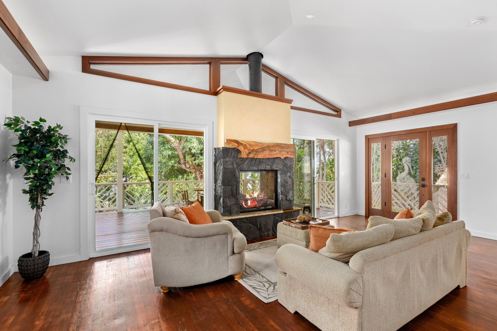 Expansive covered lanais in front and back provide seamless indoor-outdoor living in true Hawai‘i style. A rare opportunity to enjoy refined craftsmanship and natural beauty in a sought-after location.