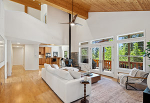 Nestled on over a half-acre and backing to greenbelt, this private Tahoe Donner home offers space, functionality, and scenic surroundings. Featuring 3 bedrooms, 3 bathrooms, and a spacious 2-car garage, the home includes a massive great room perfect for gathering and entertaining. A dedicated top-floor primary suite with loft provides added privacy. The lower level features a heated and finished workshop with whole house transfer switch to generator for year-round utility. Ample storage throughout and the convenience of a bonus wood storage in the garage. Enjoy filtered views of Martis Valley and the backside of Northstar from the great decks—ideal for relaxing or hosting. Tahoe Donner Residents have access to the exceptional amenities provided by the Tahoe Donner Homeowners Association, including a wide range of four-season activities, from golfing and swimming in the summer to skiing in the winter. This property offers a rare combination of seclusion, size, and mountain charm.