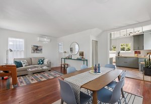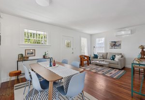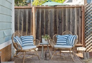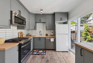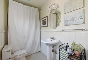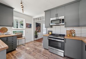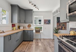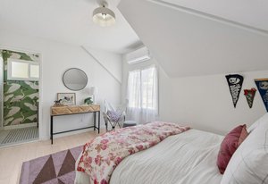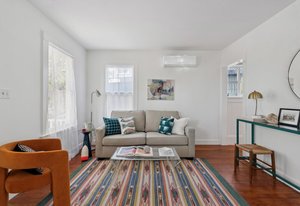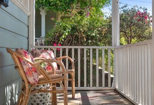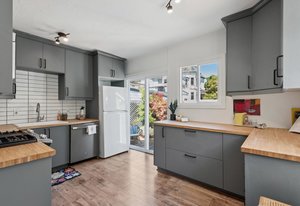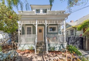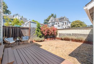Darling and historic Victorian in the fun and vibrant Clinton neighborhood. First, step onto the dreamy porch – perhaps where you will enjoy coffees, or spend evenings watching the golden hour. In the living room, note the beautiful fir floors and flexible space. The kitchen is comfortable and offers plenty of storage. Sliding glass doors in the kitchen lead to a deck and back yard for eating outdoors and gardening. On this level find a half bath with washer/dryer. Up the stairs are two adorable bedrooms and a full bath. At the end of the long, generous driveway is a detached garage which has been used as a studio/office. Close to fabulous Xotchi Cafe and the beloved Champa Garden restaurant. Check out the Buddhist shrine on the corner (listen to the podcast episode “He’s Still Neutral” on 99% Invisible to learn about this amazing little piece of Oakland history). Less than a mile to the Lake Merritt.