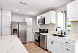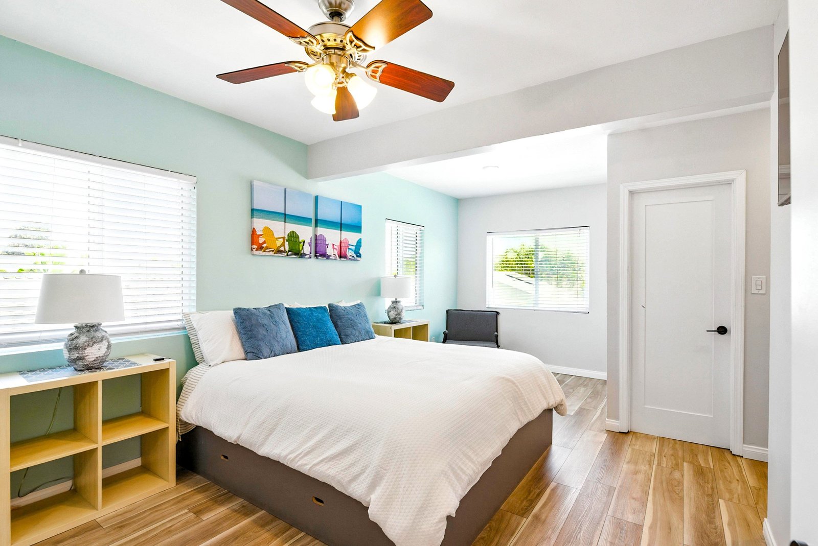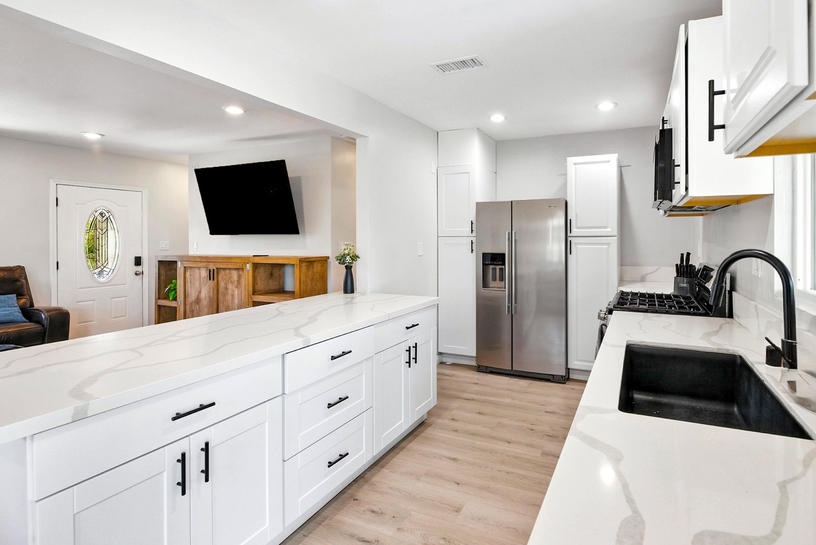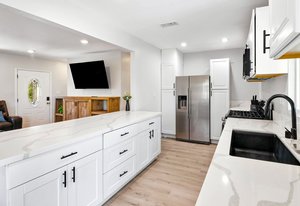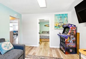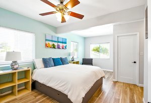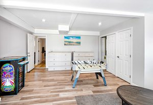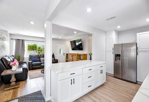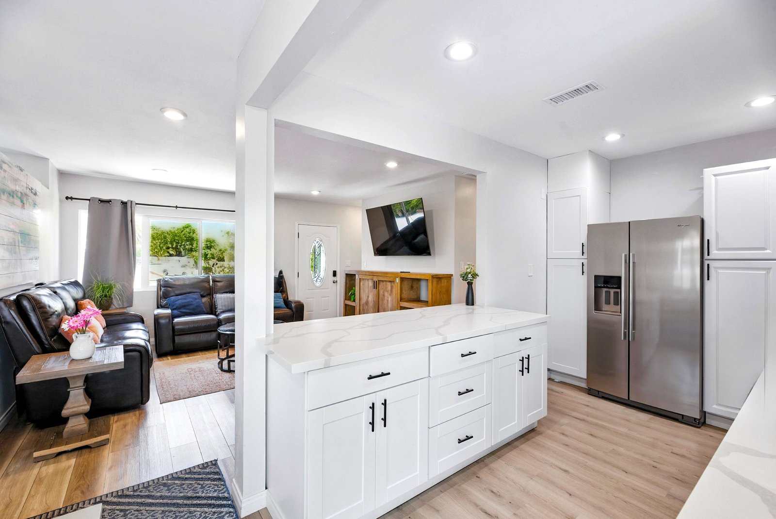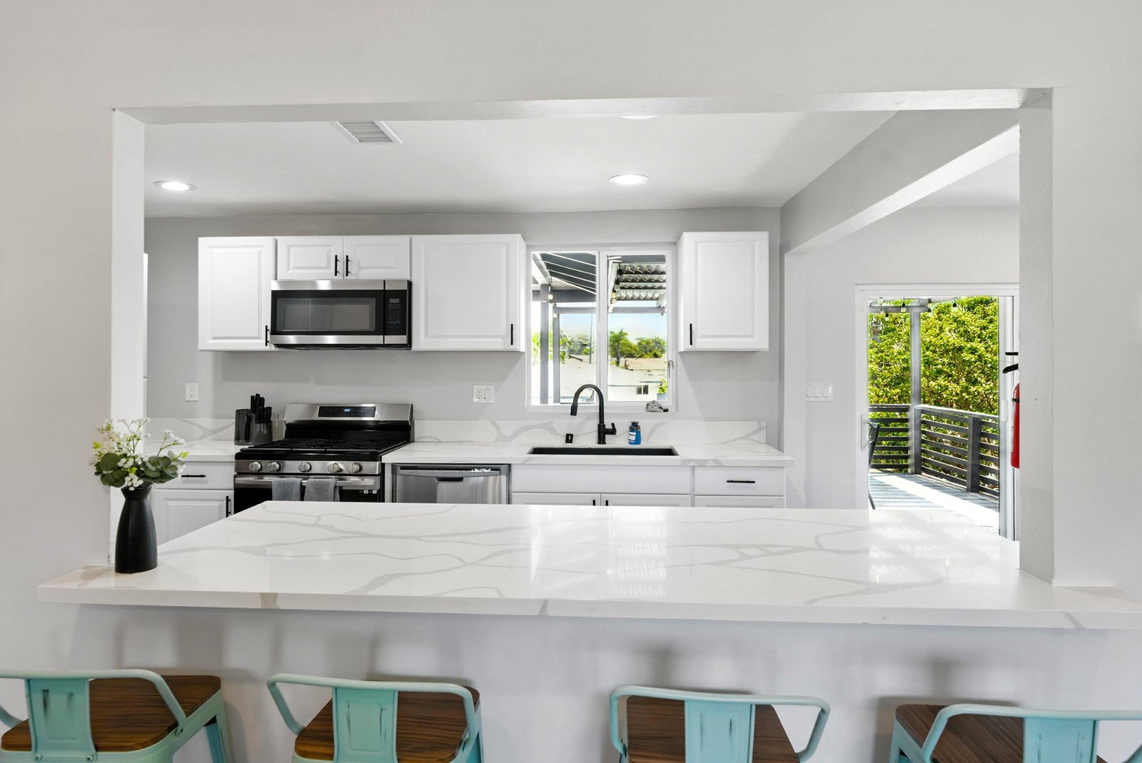 Located about a half mile to the Pacific Ocean, is this tastefully remodeled mid century beach bungalow. Fully fenced front yard with two play structures over grass leads to the entry of this 4+ bedroom, 3 bath house. Enter the front door and you’ll be greeted by a spacious living room that is open to a beautifully remodeled kitchen with quartz countertops, white shaker cabinets and stainless-steel appliances. Dining area off the kitchen features a glass slider that leads out to a large lanai that overlooks the back yard. Main level also features primary bedroom with the remodeled bathroom and a secondary bedroom with another full bathroom. Head down the stairs to the lower level of this entertainer’s delight and you’ll see a sitting area that leads to a spacious recreation room that features two stacked washer/dryer combos and a separate closet. This room could also serve as a fifth bedroom should you choose. Two more bedrooms and a full bathroom are also located on this lover level that leads out to the incredible, fully-fenced back yard. A large concrete patio with firepit is connected to a covered BBQ pavilion with granite covered bar and a large dining area. Rounding out the back yard paradise is a newly-built pool with spa as well as a covered patio. Two off street parking spaces are conveniently located beyond the fence off of the rear alley. Side yard leads to front and second side yard is also fenced in.
