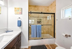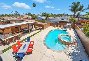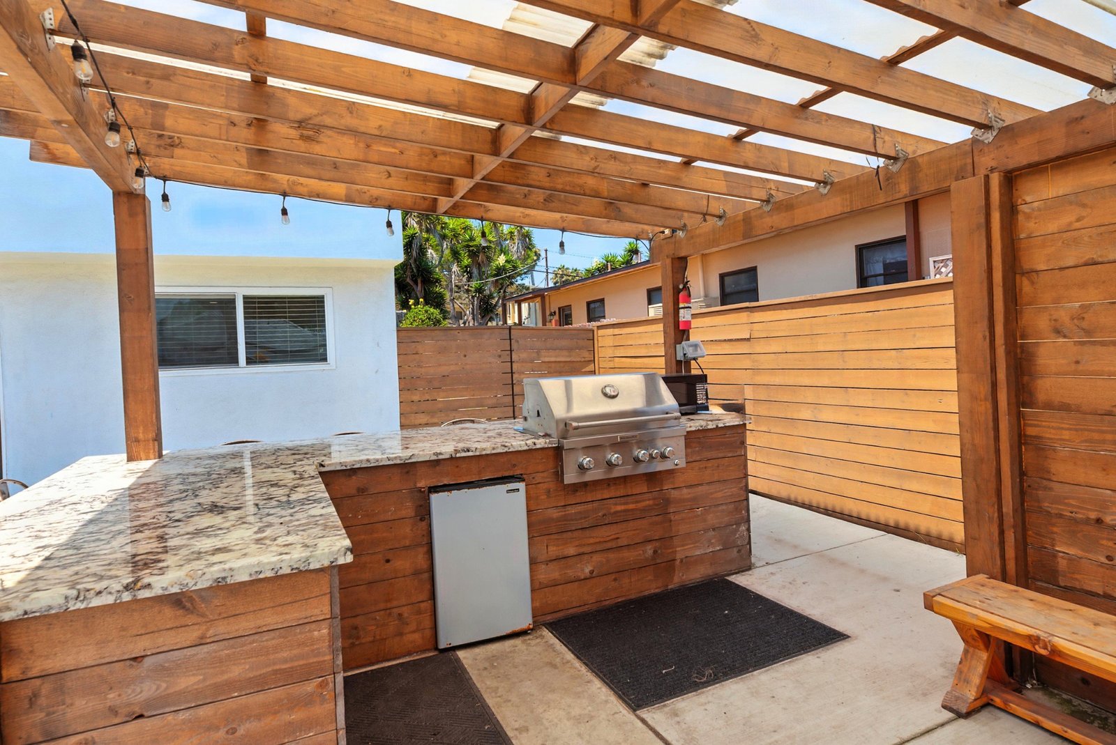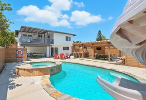 Fully remodeled, move-in-ready beach bungalow with a back yard designed for the ultimate in entertaining! Upstairs features open floor plan with living room, kitchen & dining area, as well as a large lanai overlooking the back yard. Sparkling pool with slide, bubbling spa, covered BBQ pavilion, large patio with firepit as well as a covered patio all reside out back for your enjoyment. Here is your opportunity to live the beach lifestyle and be close to shopping, restaurants, schools, Buccaneer Park and the Oceanside Pier. 2 bedrooms and 2 full bathrooms on the main level and 2 more spacious bedrooms and another full bathroom on the lower level with a sitting room and a recreation room with that leads out to your amazing back yard.