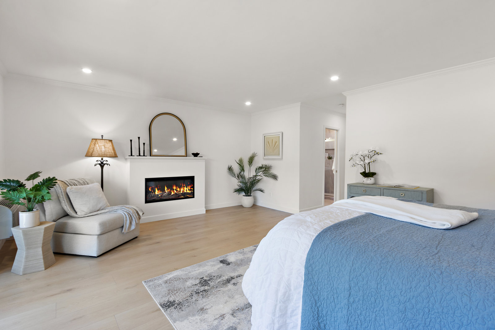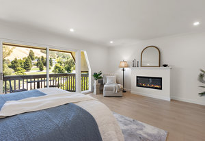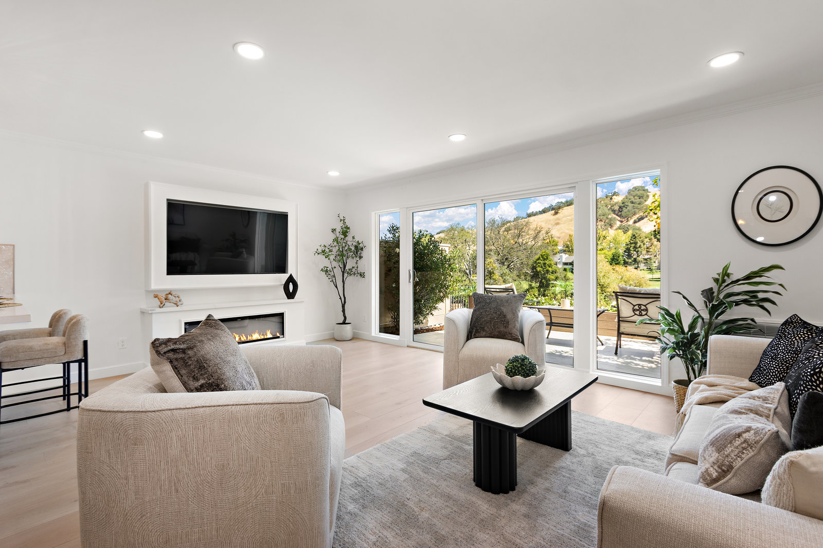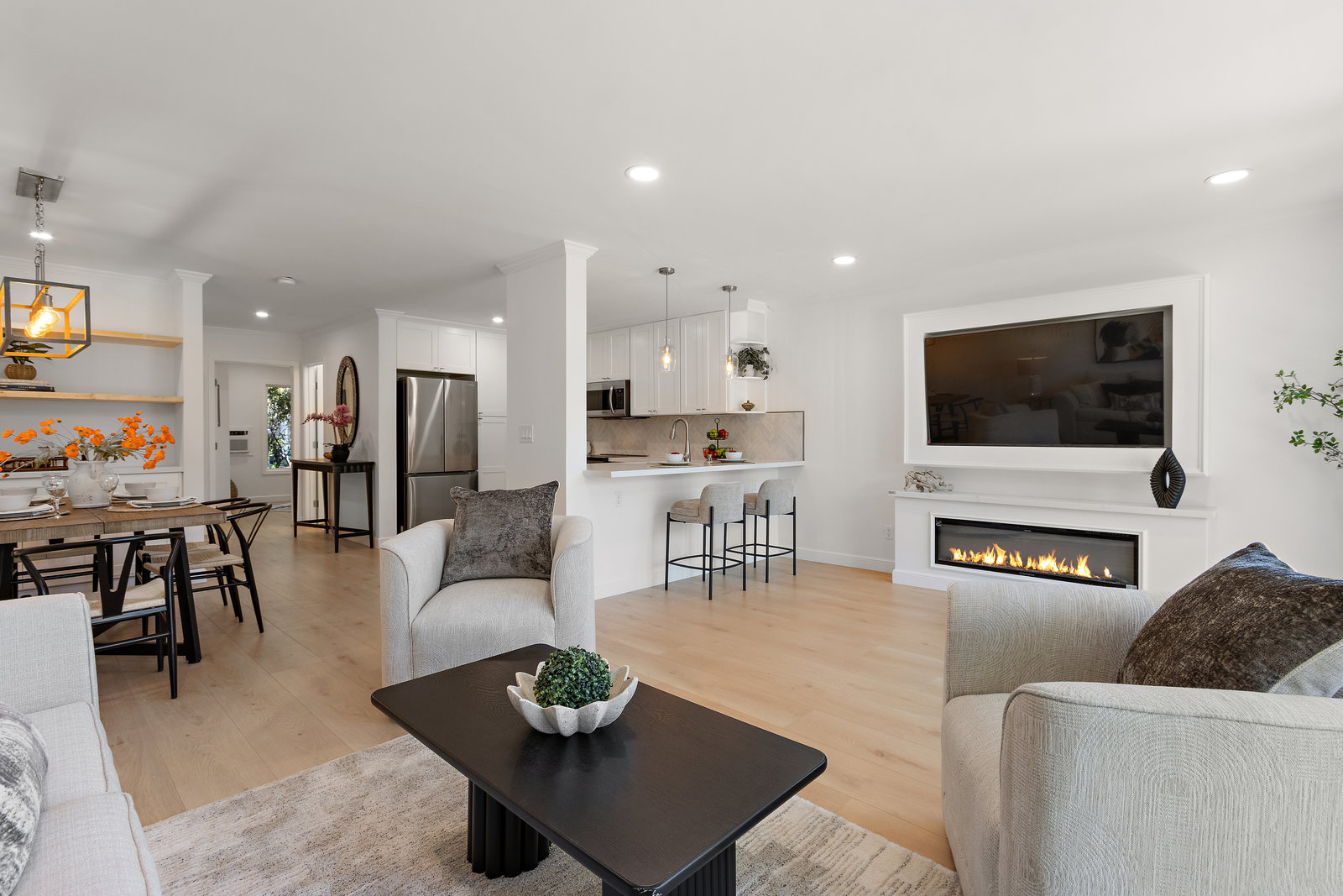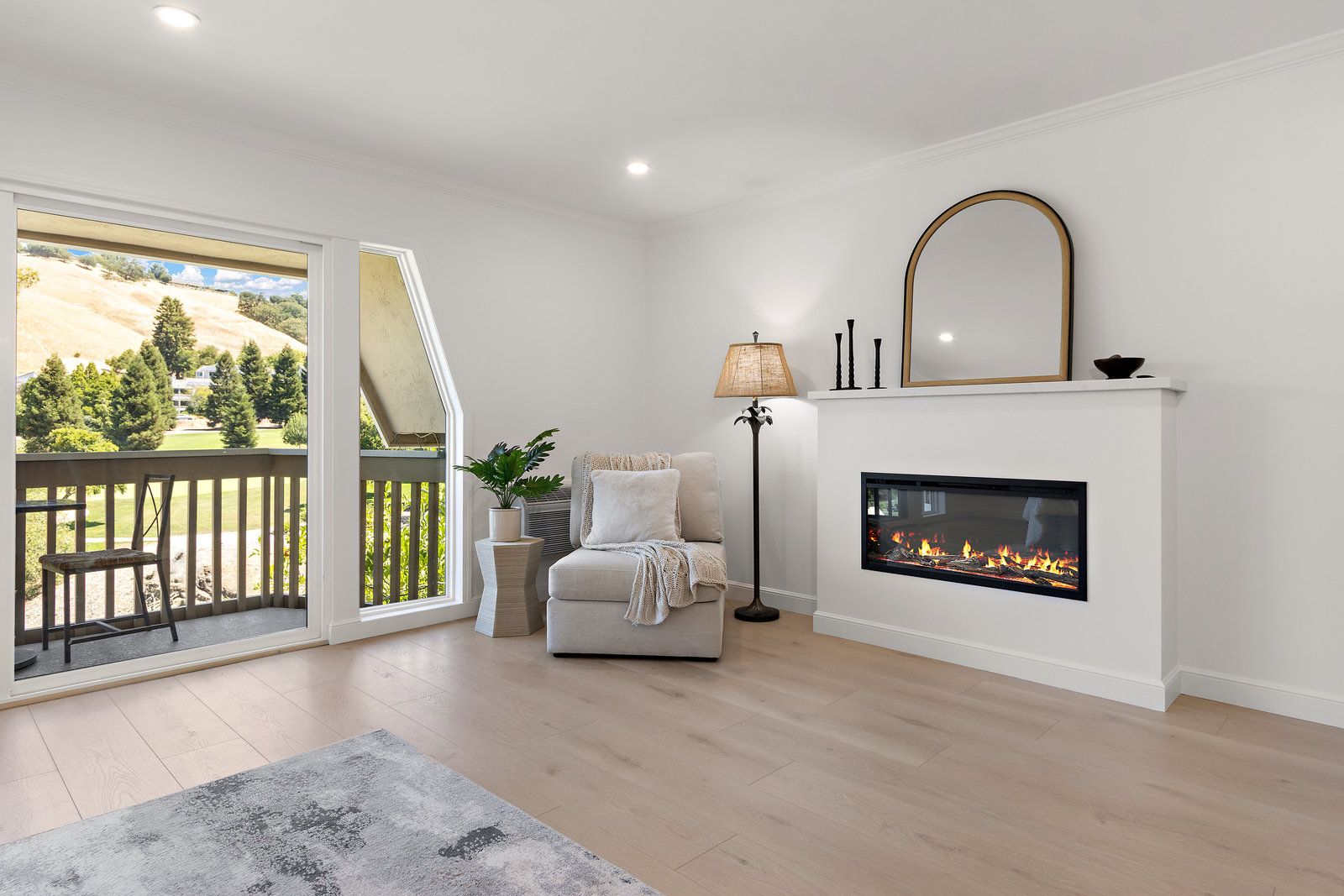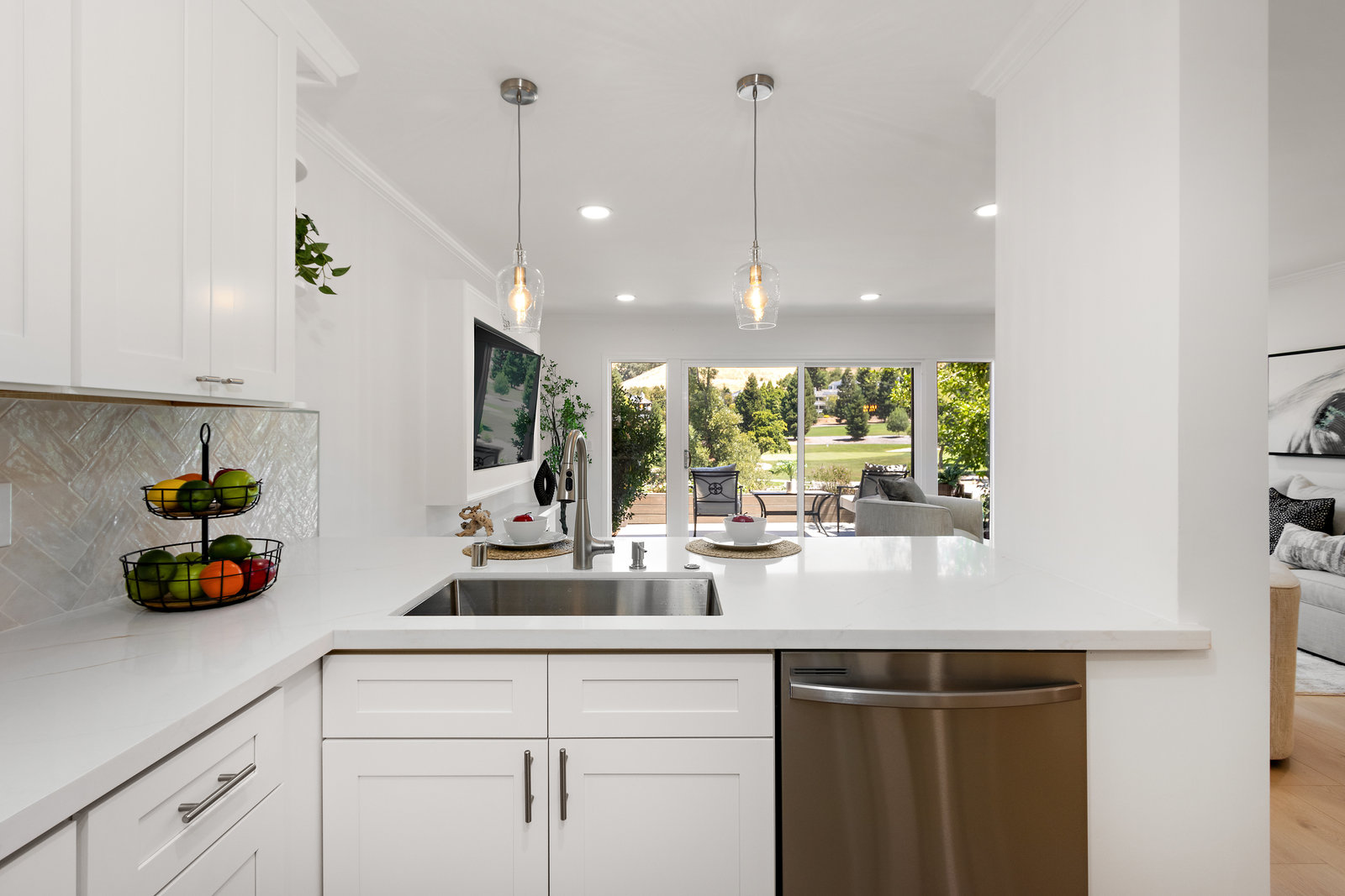 Wake up to sweeping views of the 14th fairway and the rolling hills beyond in this gorgeous remodeled 3BD/3BA Rossmoor townhome. Designed for today’s lifestyle, the reimagined floor plan features an enlarged kitchen with white cabinetry, quartz counters, herringbone backsplash, stainless steel appliances, and a peninsula with island-style seating—perfect for casual meals or entertaining. The primary suite is a retreat with golf course views, walk-in closet, dual sinks, medicine cabinets, designer-tiled shower, and an electric fireplace. A second upstairs ensuite offers a full bathtub, while the downstairs bedroom doubles as an office or guest space, complete with extra storage. Luxury vinyl plank flooring, recessed lighting, designer fixtures, new dual-pane windows/sliders, and built-in dining storage add style and comfort. Each room enjoys its own heating/AC controls. Relax on the tiled patio and take in the scenery, with convenient parking just steps away. Located in Rossmoor’s vibrant 55+ community, residents enjoy access to golf, pickleball, swimming, tennis, a top-notch fitness center, movie theater, art and hobby studios, and nearly 200 clubs and organizations.