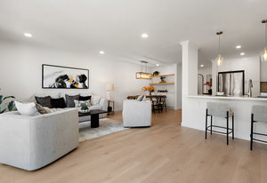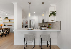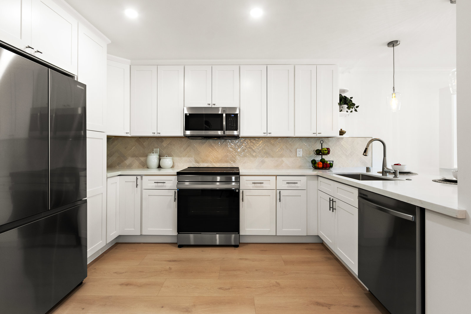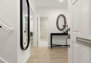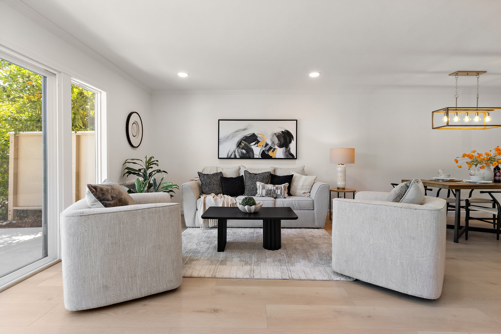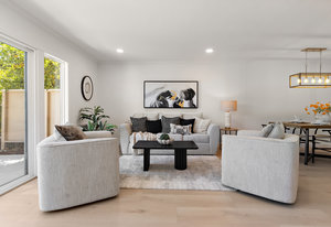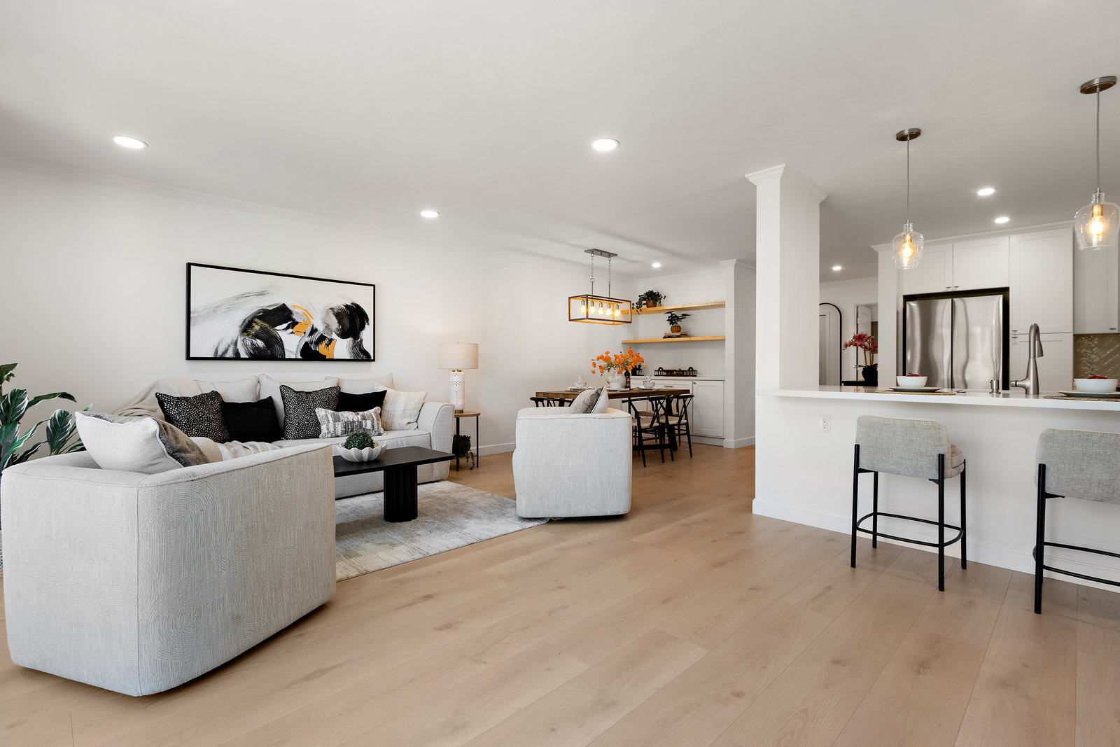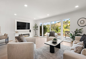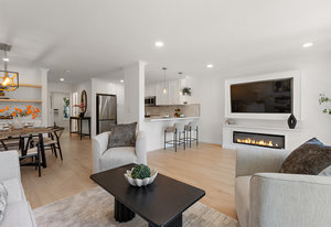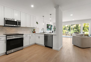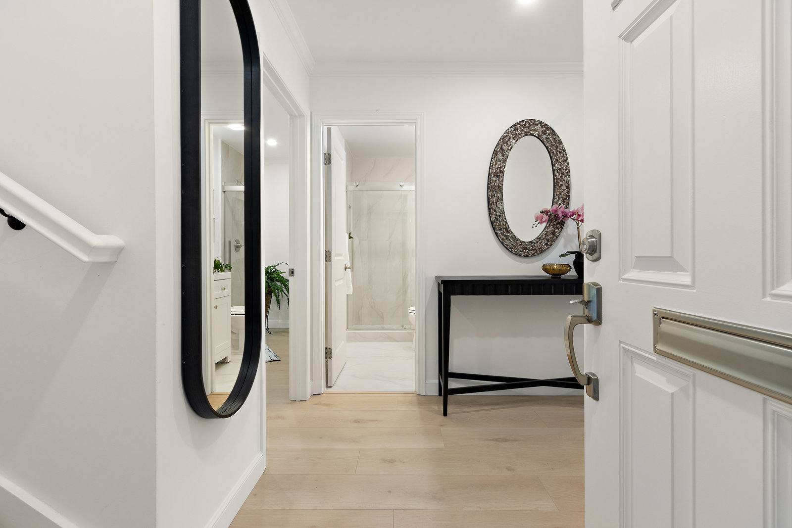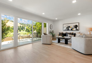 Wake up to sweeping views of the 14th fairway and the rolling hills beyond in this gorgeous remodeled 3BD/3BA Rossmoor townhome. Designed for today’s lifestyle, the reimagined floor plan features an enlarged kitchen with white cabinetry, quartz counters, herringbone backsplash, stainless steel appliances, and a peninsula with island-style seating—perfect for casual meals or entertaining. The primary suite is a retreat with golf course views, walk-in closet, dual sinks, medicine cabinets, designer-tiled shower, and an electric fireplace. A second upstairs ensuite offers a full bathtub, while the downstairs bedroom doubles as an office or guest space, complete with extra storage. Luxury vinyl plank flooring, recessed lighting, designer fixtures, new dual-pane windows/sliders, and built-in dining storage add style and comfort. Each room enjoys its own heating/AC controls. Relax on the tiled patio and take in the scenery, with convenient parking just steps away. Located in Rossmoor’s vibrant 55+ community, residents enjoy access to golf, pickleball, swimming, tennis, a top-notch fitness center, movie theater, art and hobby studios, and nearly 200 clubs and organizations.