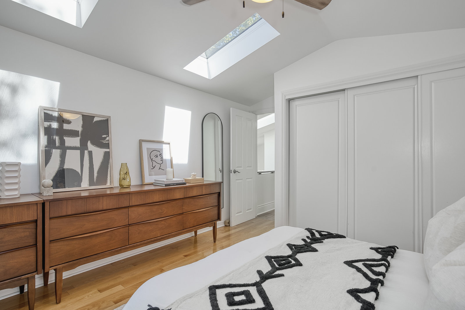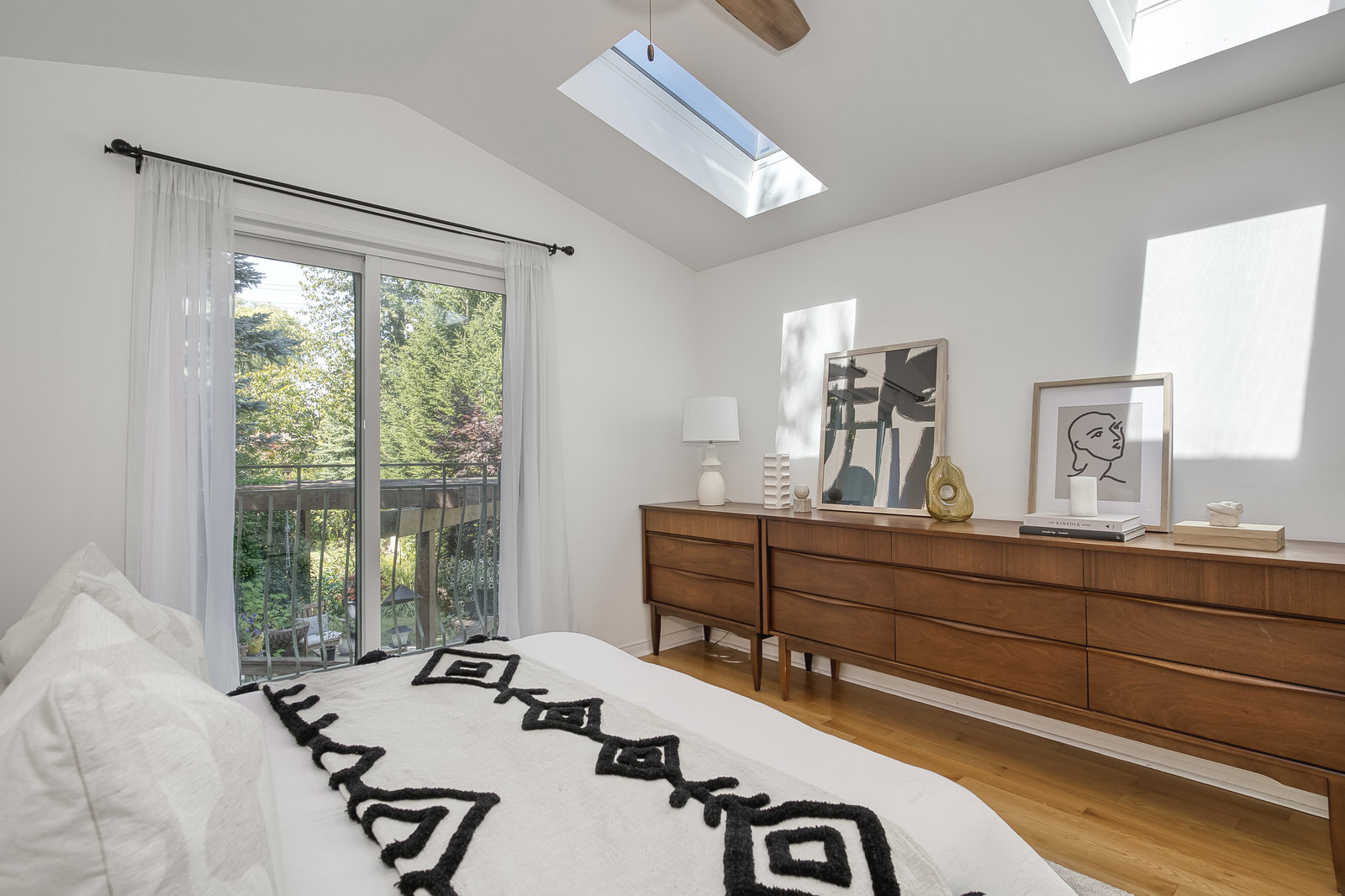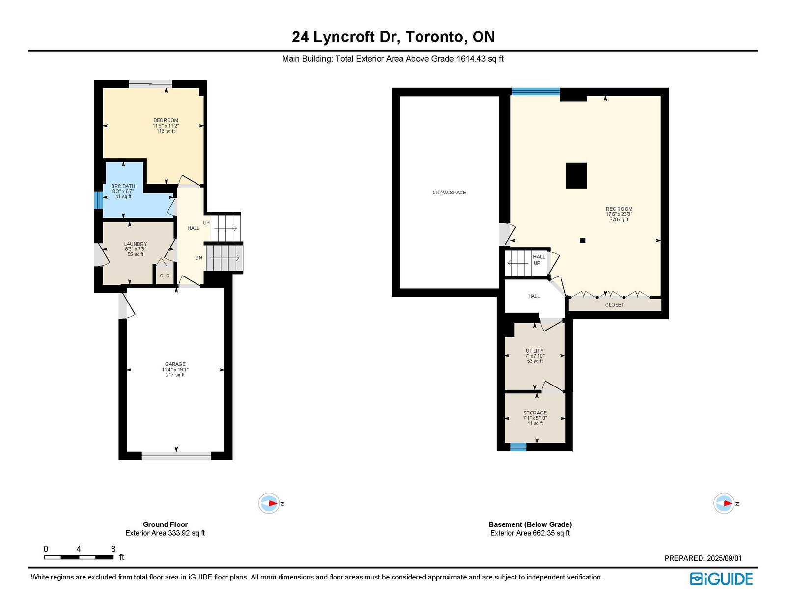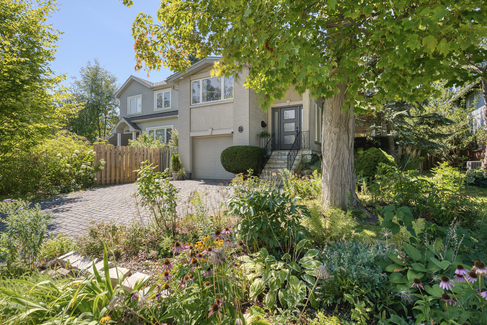 Absolutely stunning 4-bedroom, 2-bathroom detached side-split home available for sale in Scarborough's prestigious Guildwood community. This bright and spacious residence features multiple skylights and large windows that flood the interior with natural light. One of the largest homes in the area, it offers an open-concept living and dining area with a bay window and walk-out to an incredible yard. The modern, sky-lit kitchen is equipped with stainless steel appliances, a gas stove, and a bay window. The ground-floor bedroom, renovated in 2022, can serve as a family room. Upstairs, there are three bedrooms with hardwood flooring and cathedral ceilings, including a primary bedroom with two skylights. The four-piece bathroom, renovated in 2024, includes a separate shower and soaker tub. The finished basement, renovated in 2023, features a recreation room and ample storage. New flooring has been added throughout the home in 2023, and the roof was replaced in 2019. The expansive private backyard boasts mature trees, awnings, a garden shed, and a large two-tiered deck, perfect for family gatherings. Located in a serene, family-friendly area close to Lake Ontario, parks, trails, and with easy access to public transit via TTC stops and Guildwood GO station. A true must-see!