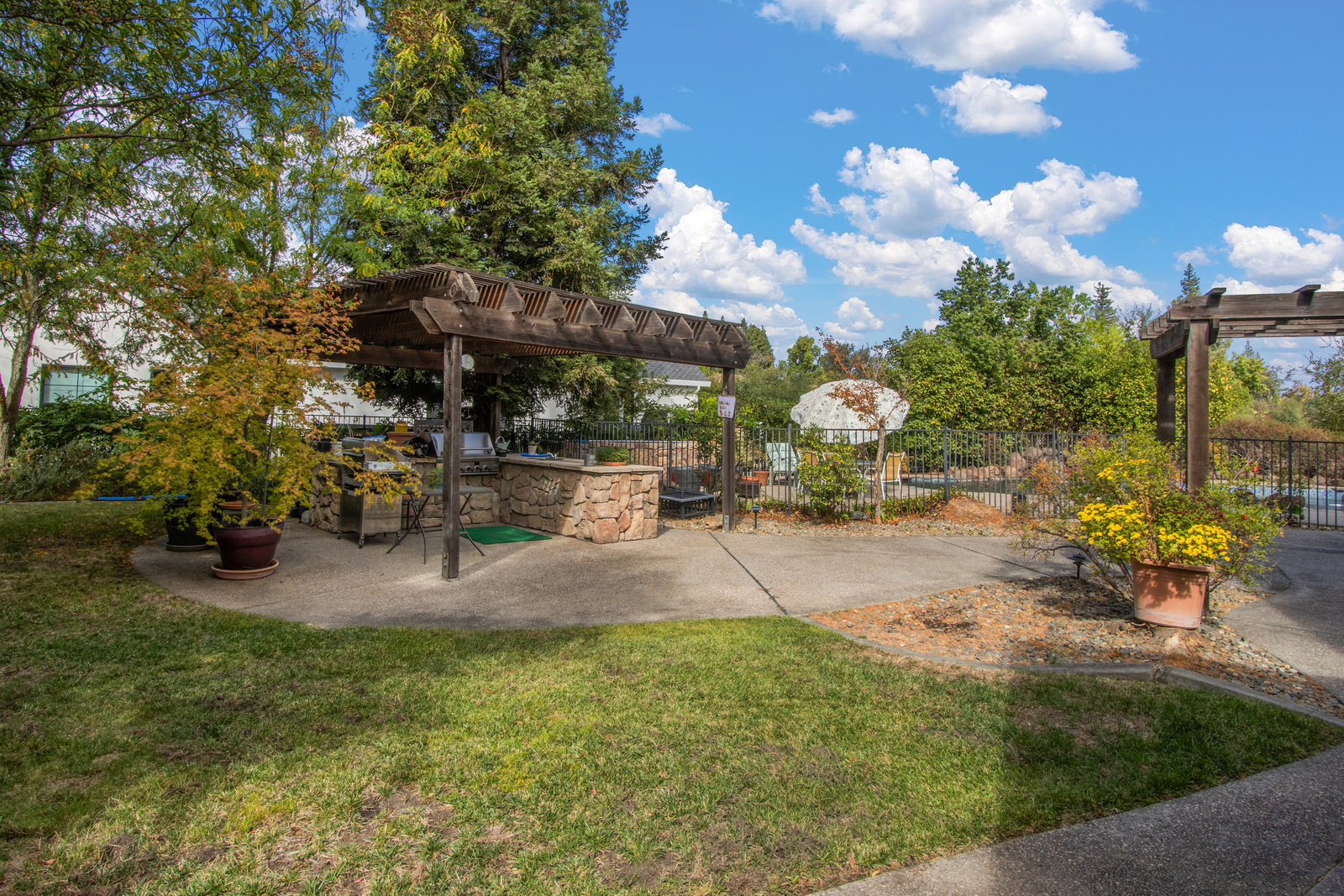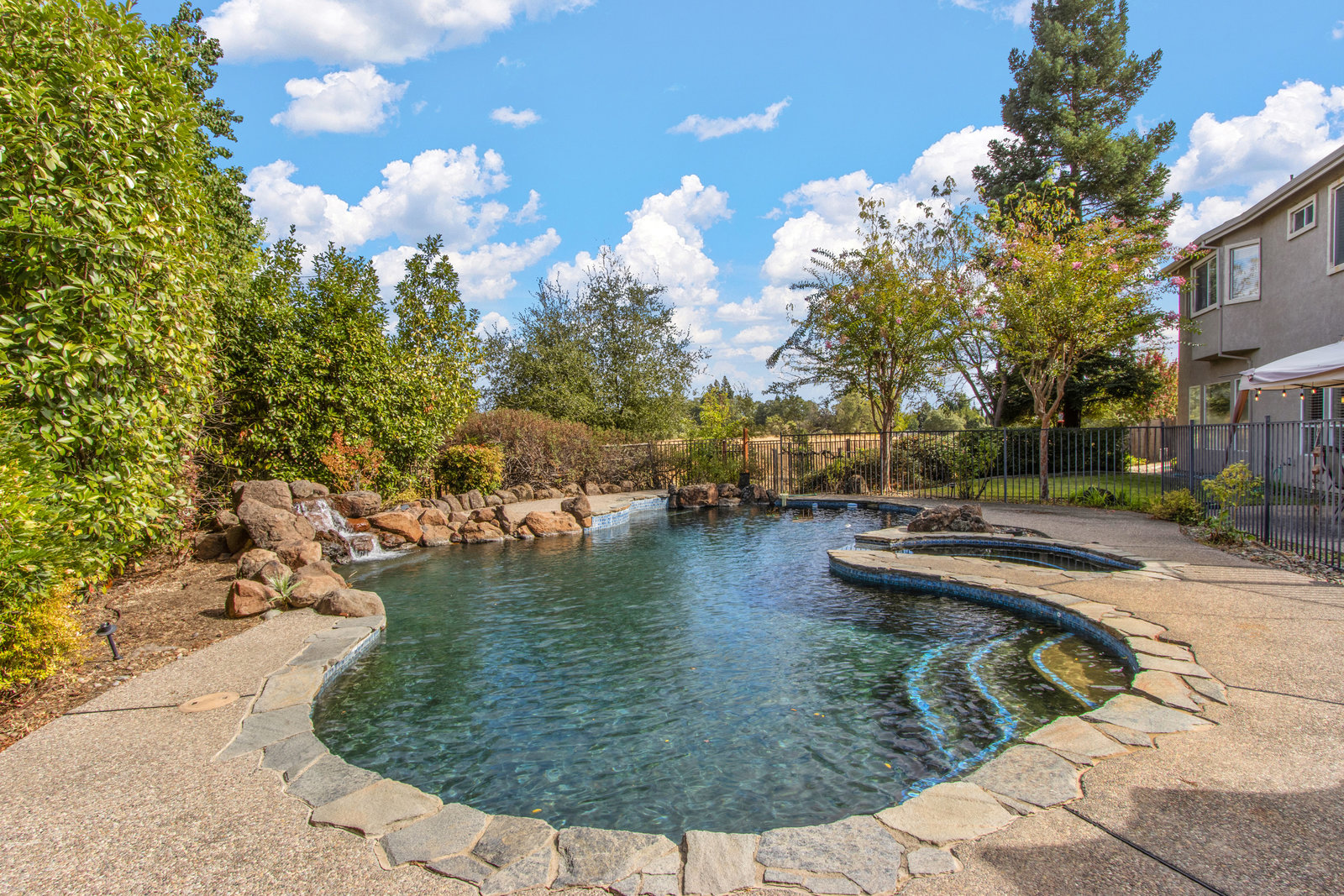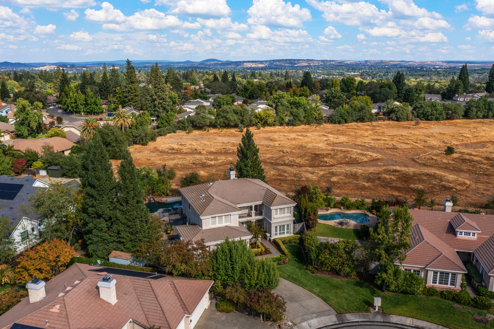 This luxurious Fair Oaks home is situated in the sought-after Phoenix Field neighborhood. The generous, 3,700-square-foot floor plan features four large bedrooms, four full bathrooms, a striking office and a versatile space that could be a media room, library, or another bedroom/in-law quarters. The secluded rear spaces feature a pool with spa, outdoor kitchen area, patios, lawns . . . even a putting green. Family and friends will enjoy Thanksgiving in the formal dining room, Super Bowl in the wet-bar-equipped family room, Fourth of July poolside, or casual gatherings on the patio. Watch the birds and other wildlife in the adjacent, protected vernal pool reserve. This peaceful home is set back from the street on a large driveway. It offers easy access to parks, shops, restaurants, and the American River Parkway. Other features include fireplaces, a three-car garage, pantry, backyard shed, and plenty of storage. All the boxes are checked!