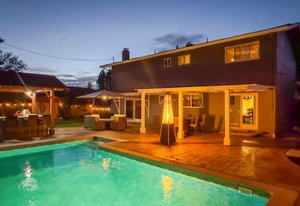 This beautifully updated Concord home blends modern upgrades with exceptional indoor–outdoor living. The refreshed kitchen shines with resurfaced cabinets, raised ceilings, new paint, sleek backsplash, recessed lighting, stainless appliances, and a custom-built pantry. The primary suite is equally impressive with a remodeled bathroom featuring a double vanity, upgraded flooring, new window, plumbing, and a more open, spa-like layout. Enjoy hardwood floors, fresh paint, recessed lighting, and a cozy family room with a gas fireplace and custom shelving. The 2-car garage is fully equipped with a sink, washer/dryer hookups, and an EV charging station. Step outside to your own private retreat! The backyard is designed for entertaining with a solar-heated pool, hot tub, and a built-in BBQ structure that includes a grill, smoker, and pizza oven—all under a shaded cover for year-round enjoyment. Recent upgrades include a new roof (2021), pool liner (2023), garage door (2023), and exterior paint (2023), ensuring peace of mind for years to come. All this in a fantastic location near Oak Grove Plaza, Citrus Marketplace, The Orchards, plus nearby hiking and biking trails.
