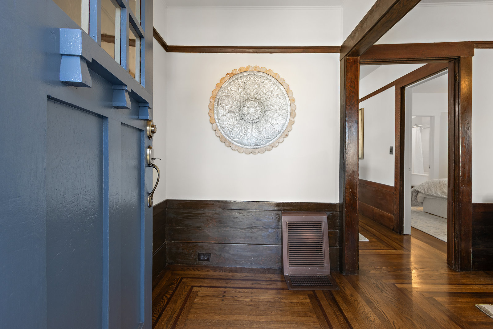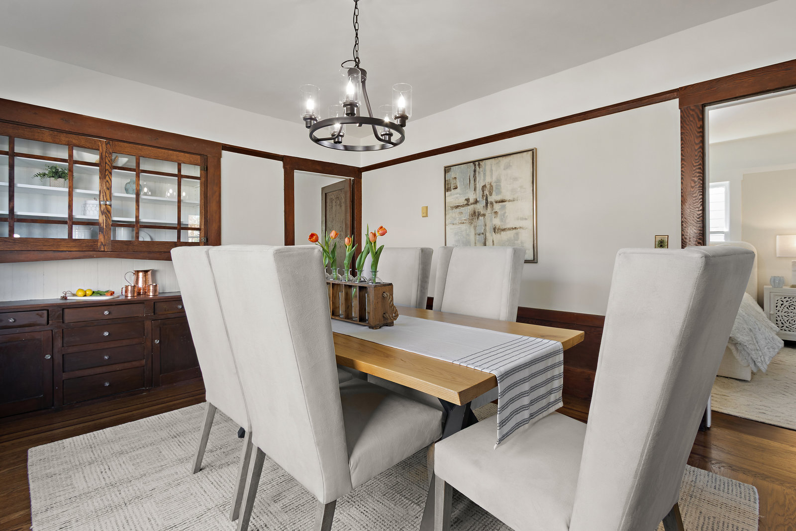 As you step inside, you are greeted by freshly refinished hardwood floors that flow throughout the home. The formal dining room is ideal for hosting dinner parties or enjoying quiet meals. The kitchen features ample storage and counter space, making meal preparation a breeze.
