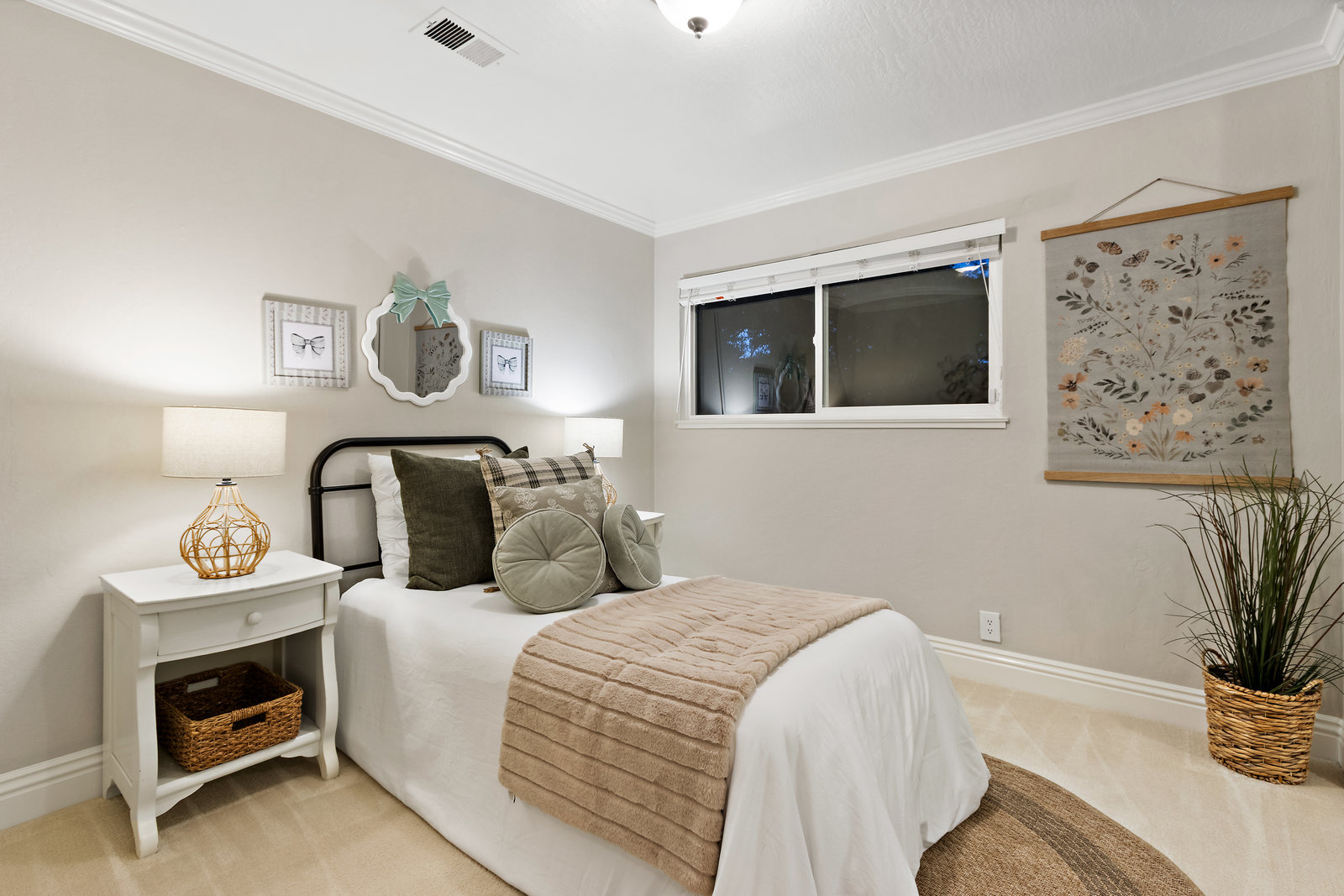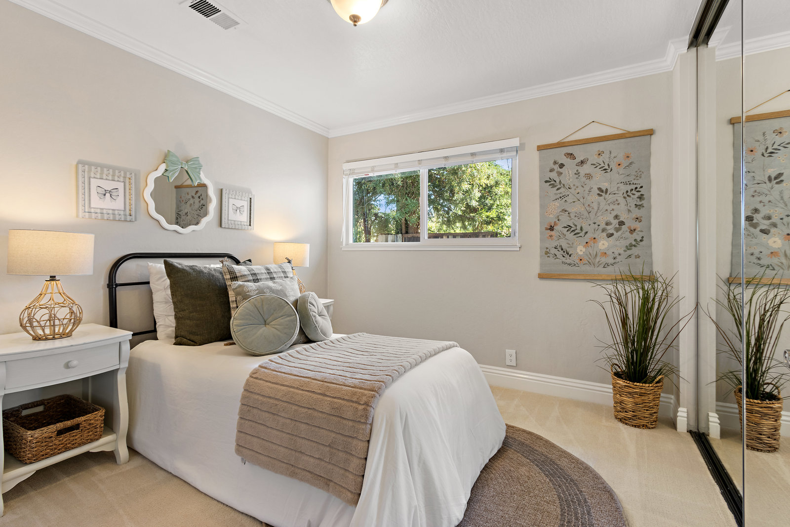 Nestled in a sought-after neighborhood within walking distance of DVC, Valhalla Elementary, College Park High, Hidden Lakes Park, Paso Nogal Dog Park, Contra Costa Country Club, shops and restaurants, this beautifully updated four-bedroom, two-bath home blends comfort, style, and convenience. The open-concept kitchen, family, and dining areas flow seamlessly together, featuring Thermador appliances, custom cabinetry, stone counters, and a large island perfect for gathering. A built-in custom china cabinet and designer lighting add elegance throughout. The large walk in pantry and laundry room with custom cabinets offer plenty of space for storage and organization. Upstairs, a converted attic bonus room—complete with built-in beds and whimsical cheetah-print accents—offers a fun retreat for kids or guests. Modern upgrades include a tankless water heater, updated kitchen and bathrooms, refreshed interior paint, custom fireplace mantel, new backyard landscaping, and refinished driveway and garage floors. This home is move-in ready and brimming with thoughtful details inside and out.