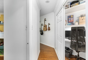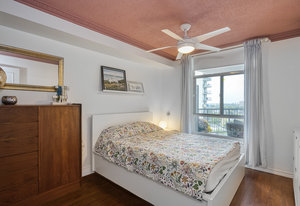Enjoy two generously sized bedrooms, along with a fabulous den that has been thoughtfully converted from the ensuite locker into a functional home office, complete with a built-in desk and shelving—ideal for remote work or study. All of this and an updated 4piece bath. This unit also includes ensuite laundry and ample closet space. Step out onto the large, private balcony and take in Northwest views.