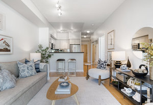 Enjoy open-concept living with a combined living and dining area that seamlessly flows onto your east-facing balcony. The modern kitchen is equipped with stainless steel appliances, a breakfast bar, and ample cabinetry, making both cooking and entertaining a pleasure.