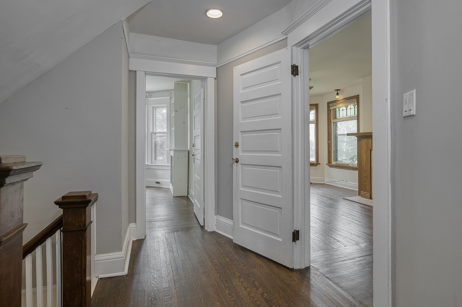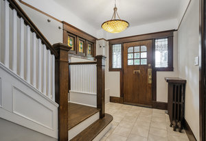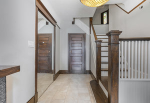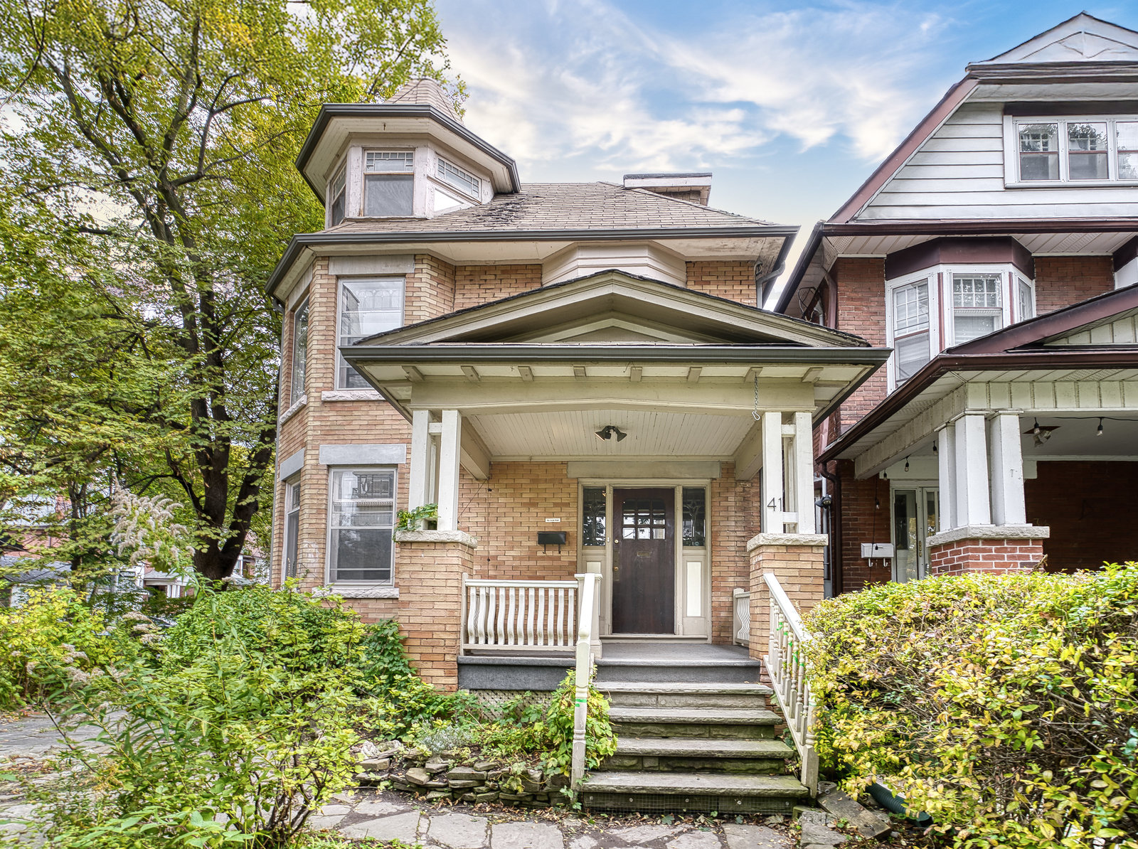 This spacious, character-filled home—circa 1911—sits proudly on a sunny corner lot and offers endless possibilities. Rich in period details, including stained and leaded glass windows, turret feature, two fireplaces, and hardwood floors. Currently configured as two separate units, this property is ideal for multigenerational living, investment income, or a seamless conversion back to a grand single-family home.