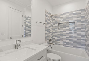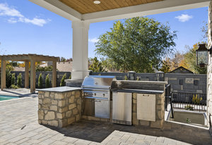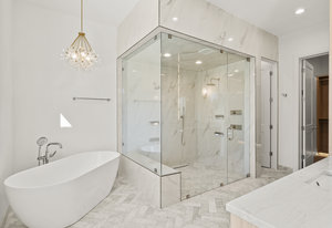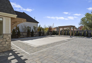 The Primary Suite is expansive and features a private covered patio! It's Bathroom has an oversized shower, free-standing tub, heated tile floors & a nicely appointed walk in closet w/ built in cabinetry & laundry. Upstairs you will find 4 bedrooms each with their own bathrooms & custom closets. The lower level is full open & bright thanks to all of the light wells! It is designed for entertaining & has room for a golf simulator or theatre room. Step out of your family room through the fully opening pocket door to your outdoor living area- The entire south end of the home is situated under a covered paver patio with a seating area, dining area & outdoor kitchen!