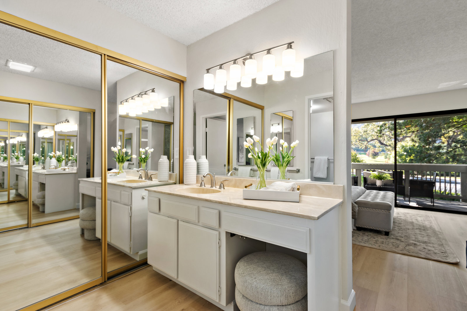Spectacular Views of Golf Course, HillsLocated in highly sought after lagoon Entry 1RossmoorParkway. Walk to Event Center, Creekside and Pickle Ball. Backbalcony faces the 3 rd Tee on Stanley Dollar ...