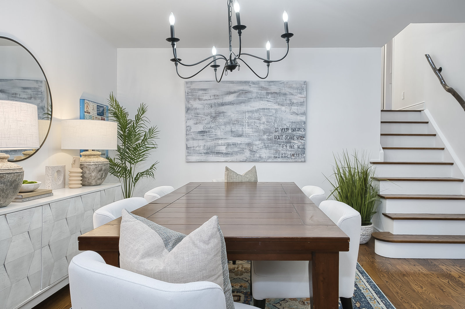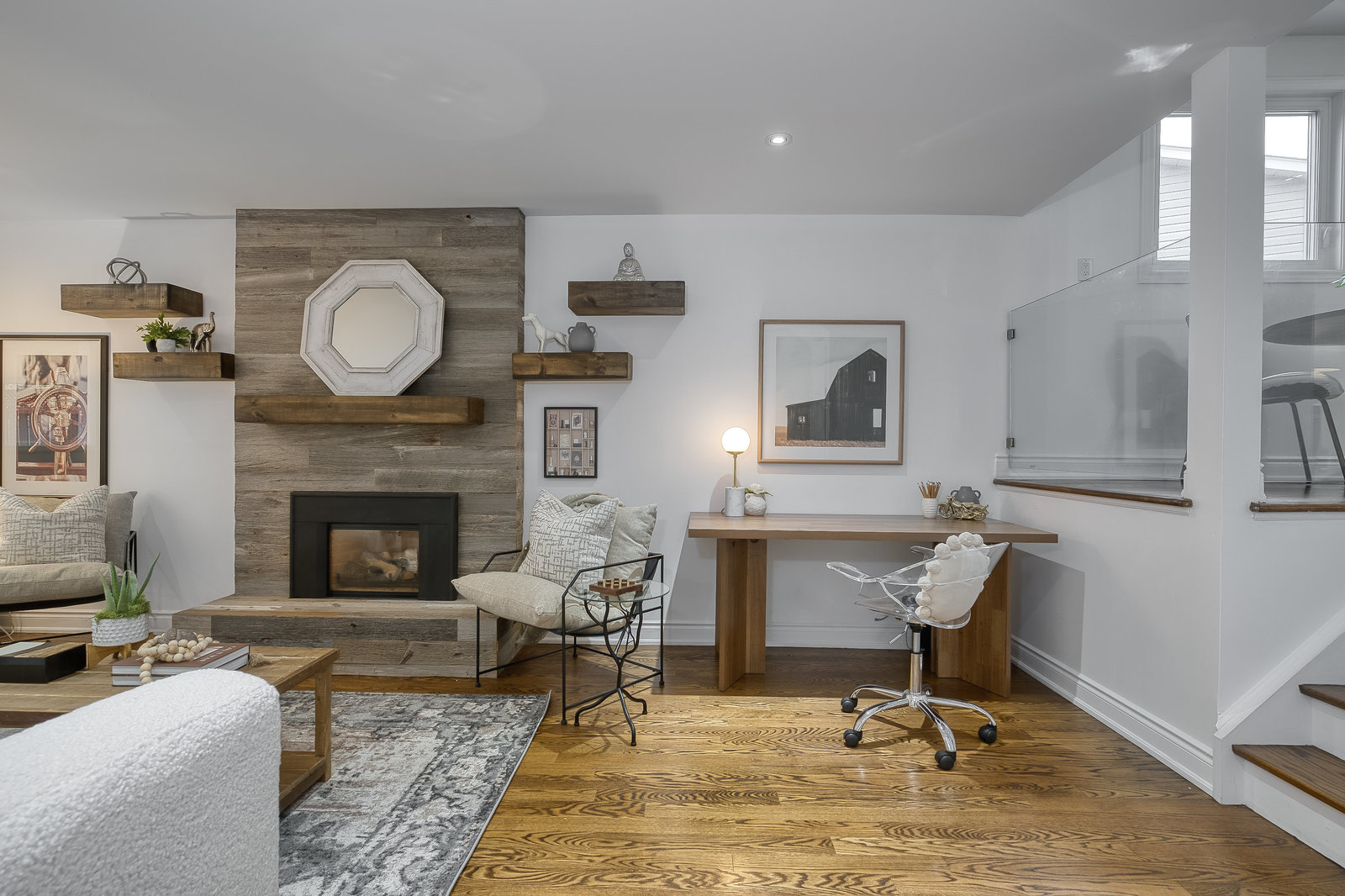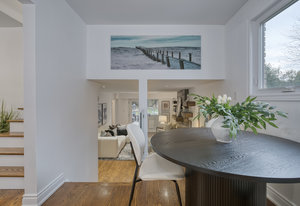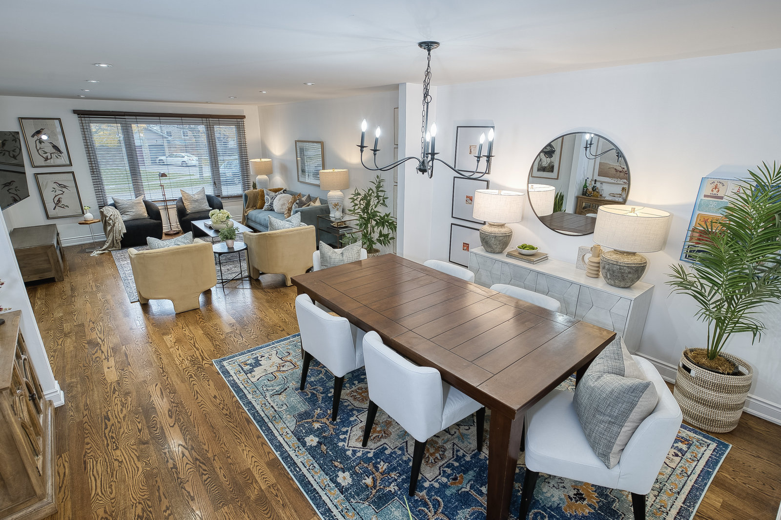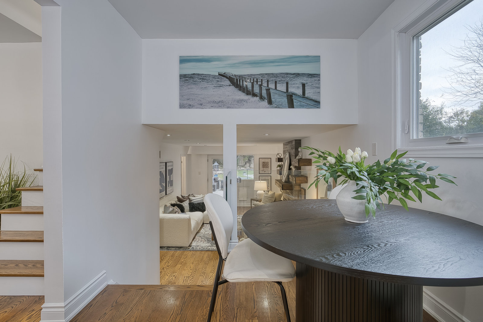 The main level welcomes you with a bright, open-concept living and dining area, highlighted by
