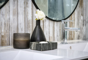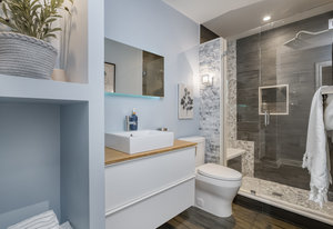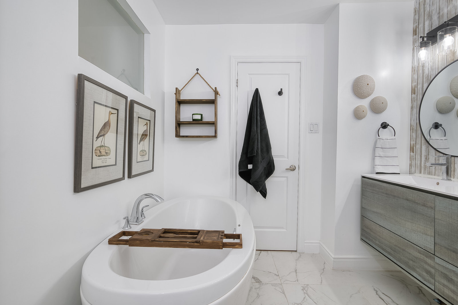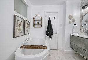 separate shower and luxurious soaking tub completes this level.