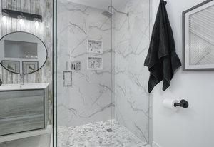 The ground-level family room is warm and inviting with a 3-piece bathroom, and a spacious