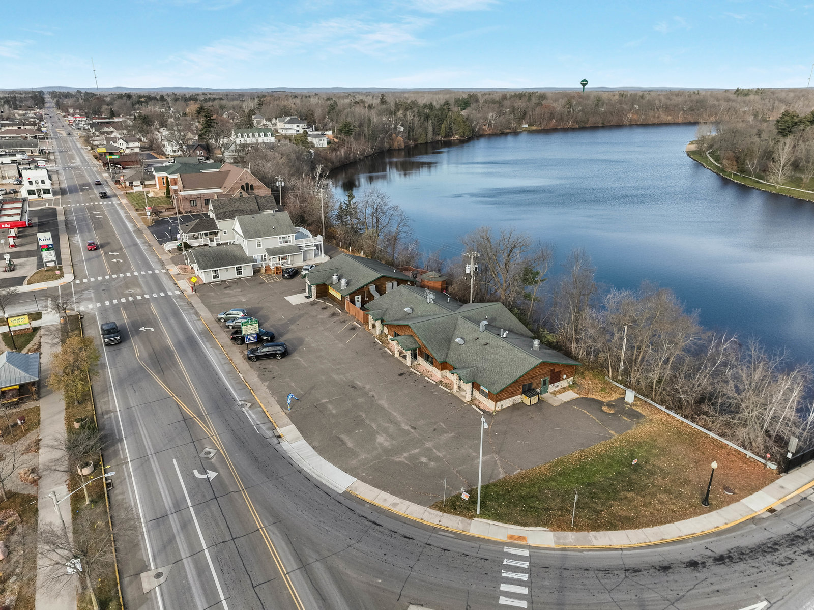 Prime investment opportunity on Ladysmith’s main corridor! Positioned on the high-visibility corner of Lake Avenue East and Highway 8, this zero-entry, slab-on-grade commercial building offers unmatched exposure, consistent vehicle traffic, and even uncapitalized views of the Flowage with your own frontage. The building features three fully leased units ready to add to your investment portfolio! The west unit is home to a long-standing nail salon tenant, leased through September of 2028. The middle unit is leased through September 2026 and operating as a 24-hour laundromat. This lease also includes full use of the adjacent office space (the east unit) and all on-site commercial laundry equipment; maintained by the tenant. Offering a solid tenant mix, stable income, flexible-use layout, and high-traffic corner placement, this is a rare chance to acquire a turn-key income-producing asset in a growing Northwoods community.