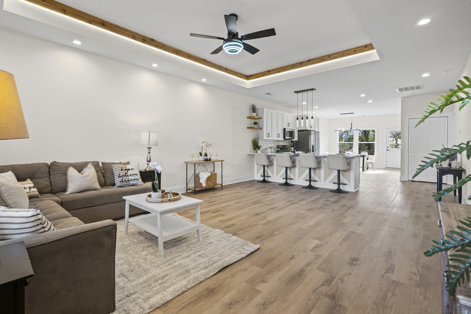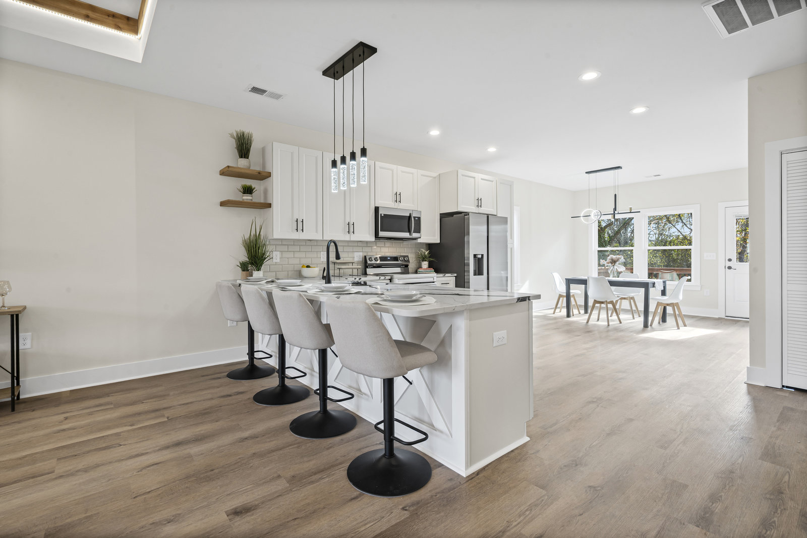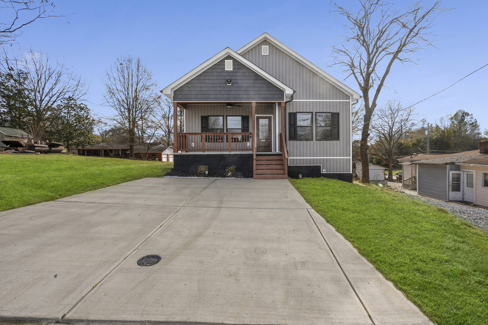 Stunning New Construction Ranch Home where modern design, comfort, and convenience come together just 3 minutes from Downtown Concord. This beautifully crafted home offers a spacious open-concept layout, perfect for both everyday living and entertaining. From the moment you enter, you’ll notice the 9-foot ceilings, recessed lighting, and LVP flooring throughout, creating a bright and seamless flow from room to room. The living room is a true highlight, complete with tray ceilings and LED lighting, adding a touch of elegance and warmth. The primary bedroom features a luxurious bathroom with a beautifully tiled shower, double vanity sinks, and a generous walk-in closet. Outside, enjoy a covered front porch ideal for morning coffee and a rear deck perfect for relaxing or hosting guests. The property includes a two-car driveway plus an additional gravel driveway, offering ample parking options. The low-maintenance yard and mature trees in the back provide a peaceful setting with natural beauty. With close proximity to restaurants, shopping, entertainment, and all that Downtown Concord has to offer, this home is the perfect blend of style and convenience. Don’t miss your chance to make this beautiful, move-in-ready home yours!