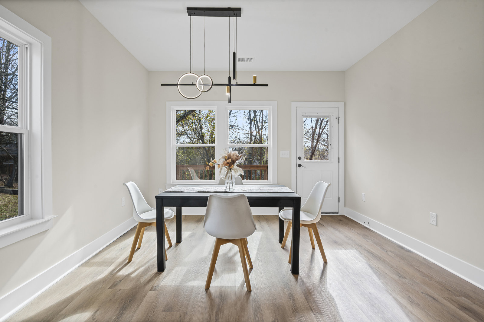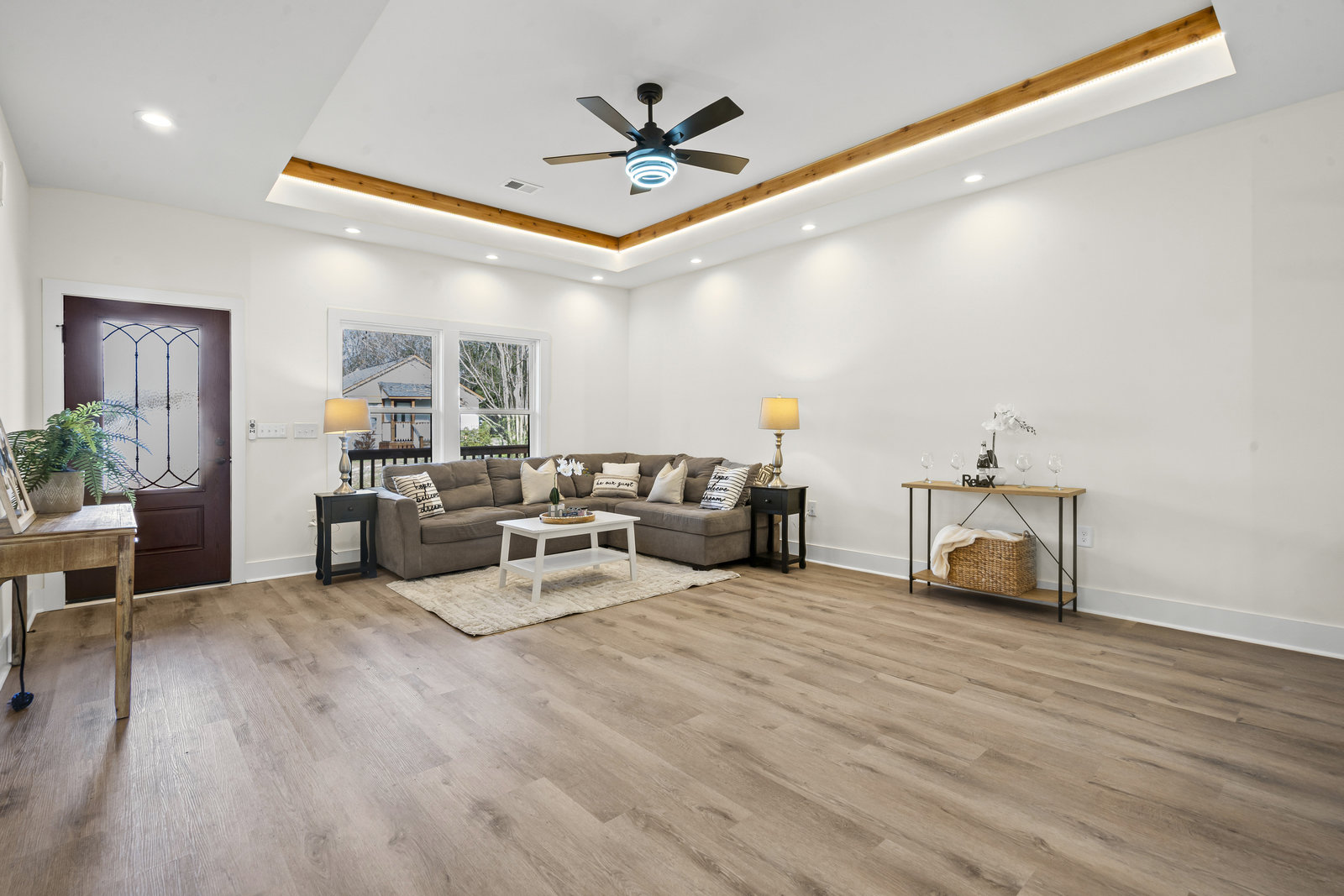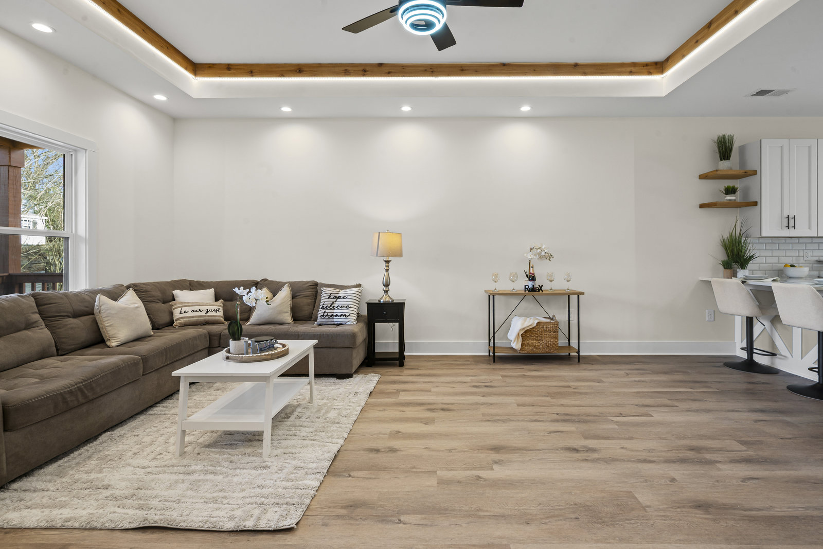 Stunning New Construction Ranch Home where modern design, comfort, and convenience come together just 3 minutes from Downtown Concord. This beautifully crafted home offers a spacious open-concept layout, perfect for both everyday living and entertaining. From the moment you enter, you’ll notice the 9-foot ceilings, recessed lighting, and LVP flooring throughout, creating a bright and seamless flow from room to room. The living room is a true highlight, complete with tray ceilings and LED lighting, adding a touch of elegance and warmth. The primary bedroom features a luxurious bathroom with a beautifully tiled shower, double vanity sinks, and a generous walk-in closet. Outside, enjoy a covered front porch ideal for morning coffee and a rear deck perfect for relaxing or hosting guests. The property includes a two-car driveway plus an additional gravel driveway, offering ample parking options. The low-maintenance yard and mature trees in the back provide a peaceful setting with natural beauty. With close proximity to restaurants, shopping, entertainment, and all that Downtown Concord has to offer, this home is the perfect blend of style and convenience. Don’t miss your chance to make this beautiful, move-in-ready home yours!