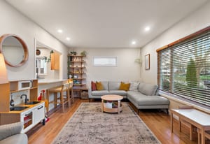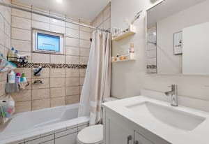 Tucked away on a quiet street with front/back half duplex that delivers single-family home privacy and feel, with flexible 1–2 bedroom BASEMENT SUITE complete with its own patio and yard space. Inside, the home features a modernized kitchen, quartz surfaces, upgraded lighting, and a bright open layout ideal for entertaining. New AIR-CON unit paired with natural gas furnace.