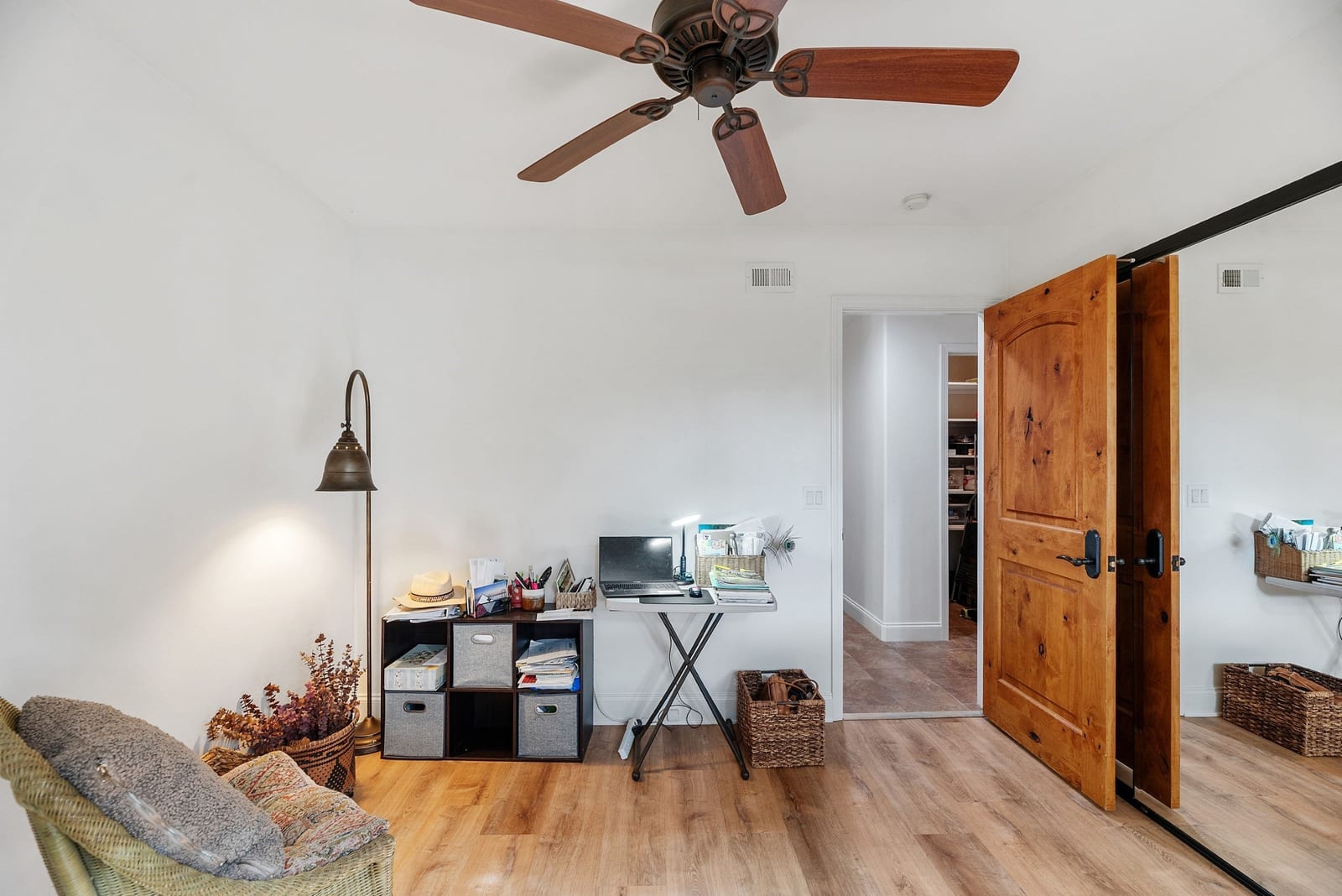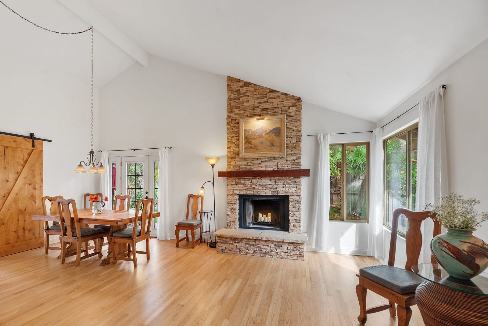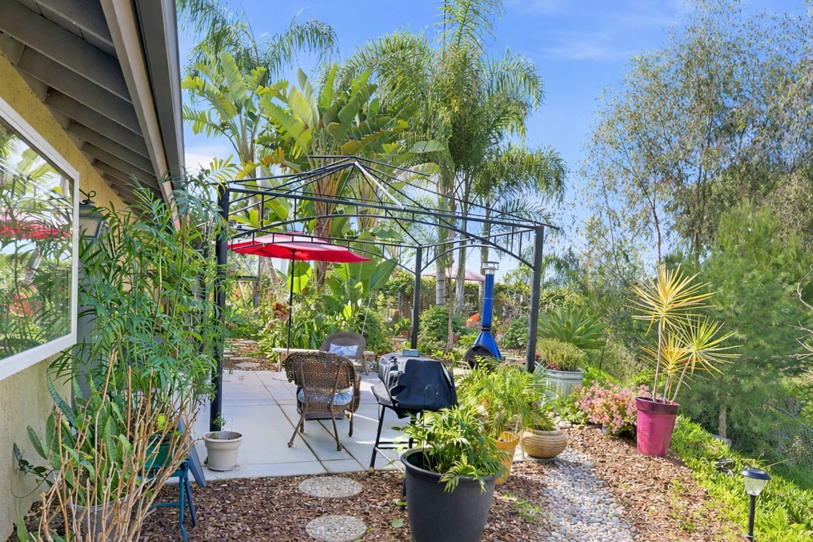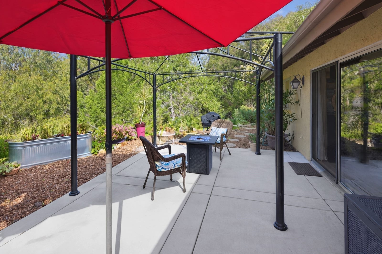 Tucked away on a desirable cul-de-sac, this lovely home offers the perfect blend of comfort, flexibility, and classic Carlsbad charm. Set on an expansive 11,400 sq ft lot with open space behind, the home enjoys peaceful views of lush greenery and mature trees, your own private retreat just minutes from the coast. Adding exceptional versatility is the attached ADU above the garage, included in the 2,172 sq ft of living space. Complete with a living area, kitchen, eating nook, bedroom, and bath, it’s ideal for extended family, guests, or a private retreat. Step onto the balcony and take in gorgeous sunset views, a daily reminder of how special this location is. The main home lives entirely on one level, featuring three bedrooms and two baths, and is thoughtfully designed for both everyday living and entertaining. The updated kitchen is a standout with Alderwood cabinetry with pull-out drawers, granite countertops, stainless steel appliances, under-cabinet lighting, and travertine tile floors. It opens seamlessly to the spacious family room, where vaulted ceilings, a casual dining area, and a sliding door to the backyard invite gatherings to flow effortlessly indoors and out. The private and peaceful backyard oasis offers endless possibilities: sip your morning coffee, unwind at the end of the day, or host memorable gatherings surrounded by nature. A formal dining room opens to a tranquil grassy side patio, ideal for alfresco dinners, while the large living room offers a cozy stone fireplace and a charming barn door at the entryway. The front yard provides a welcoming sitting area, perfect for greeting neighbors or enjoying a quiet moment. The spacious primary bedroom features a walk-in closet, updated bathroom with skylight, ceiling fan, and French doors offering a lovely view and access to the backyard. Beautiful Alderwood cabinets and doors are showcased throughout the home, adding warmth and a cohesive design element. All this, just minutes from the beach, Carlsbad Village, shopping, dining, schools, and freeway access. This is a home that truly offers options, warmth, and lifestyle, a rare opportunity in one of Carlsbad’s popular neighborhoods.