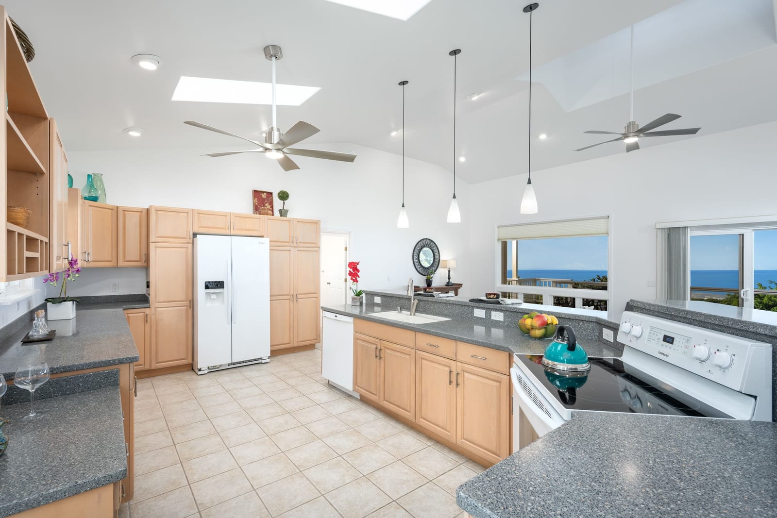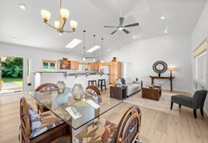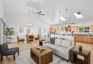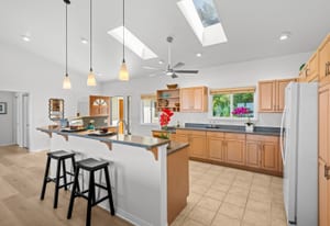 Easy access to single level living with vaulted ceilings, skylights and a cupola.