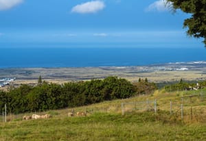 Country living in sunny Kaloko, with expansive coastal views over pasture.